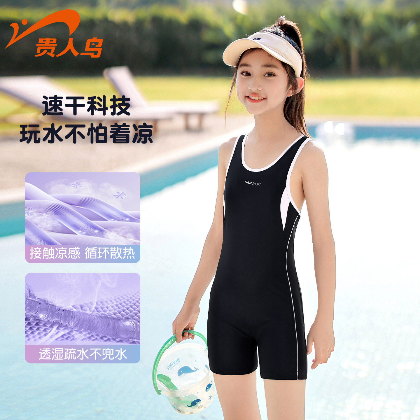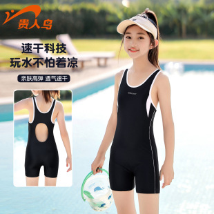 贵人鸟儿童泳衣女童2026新款 小女孩中大童连体泡温泉速干游泳套装