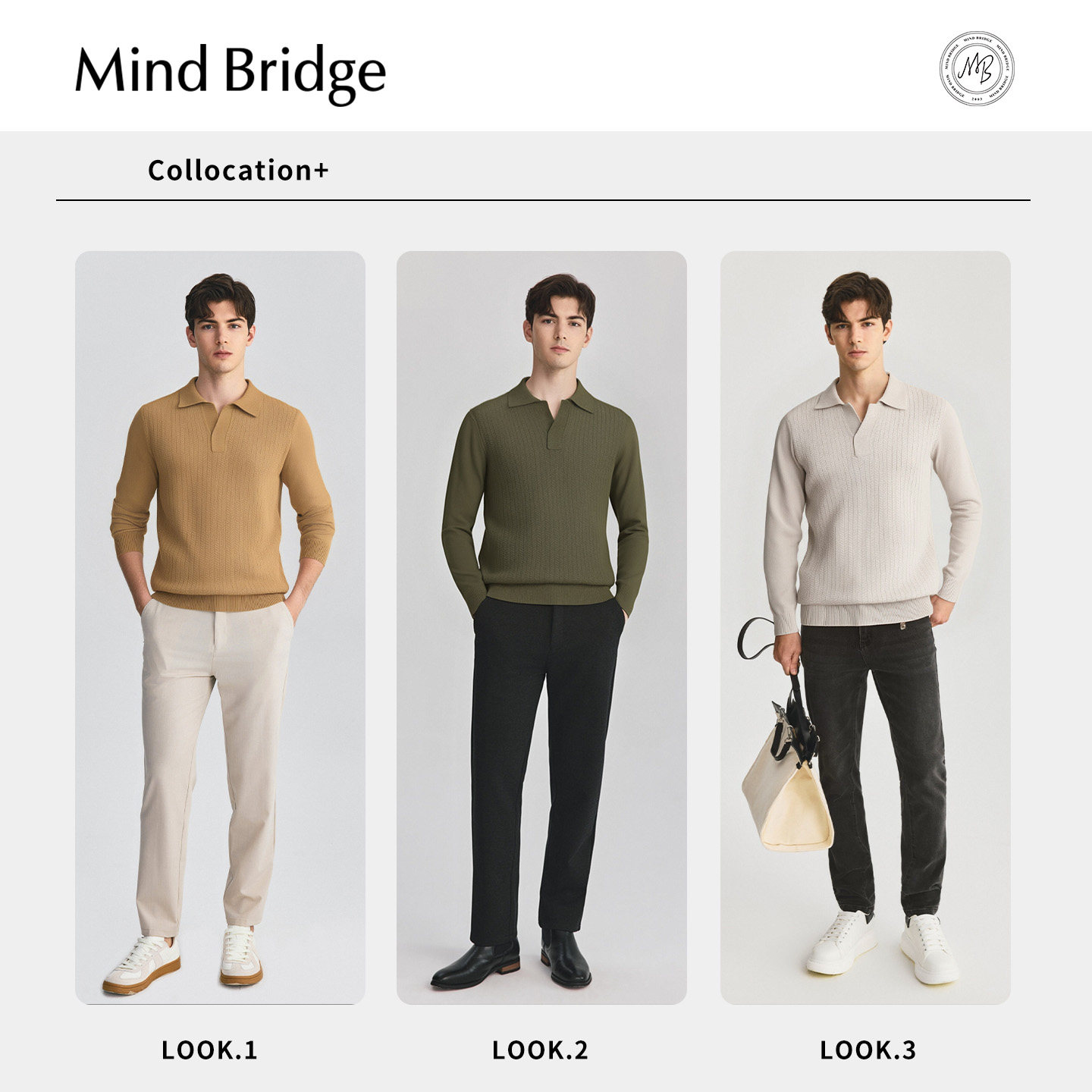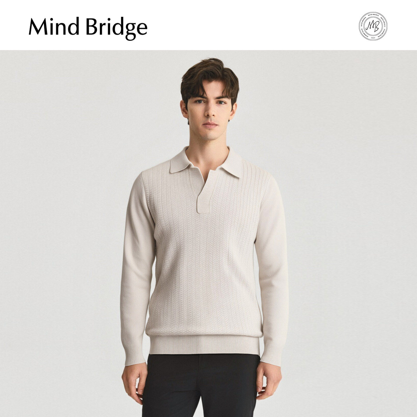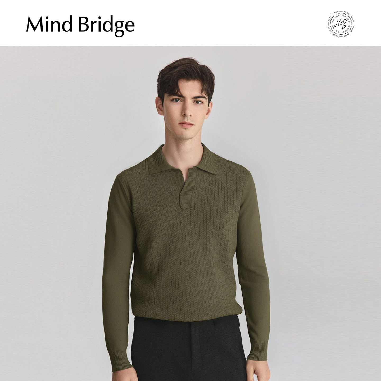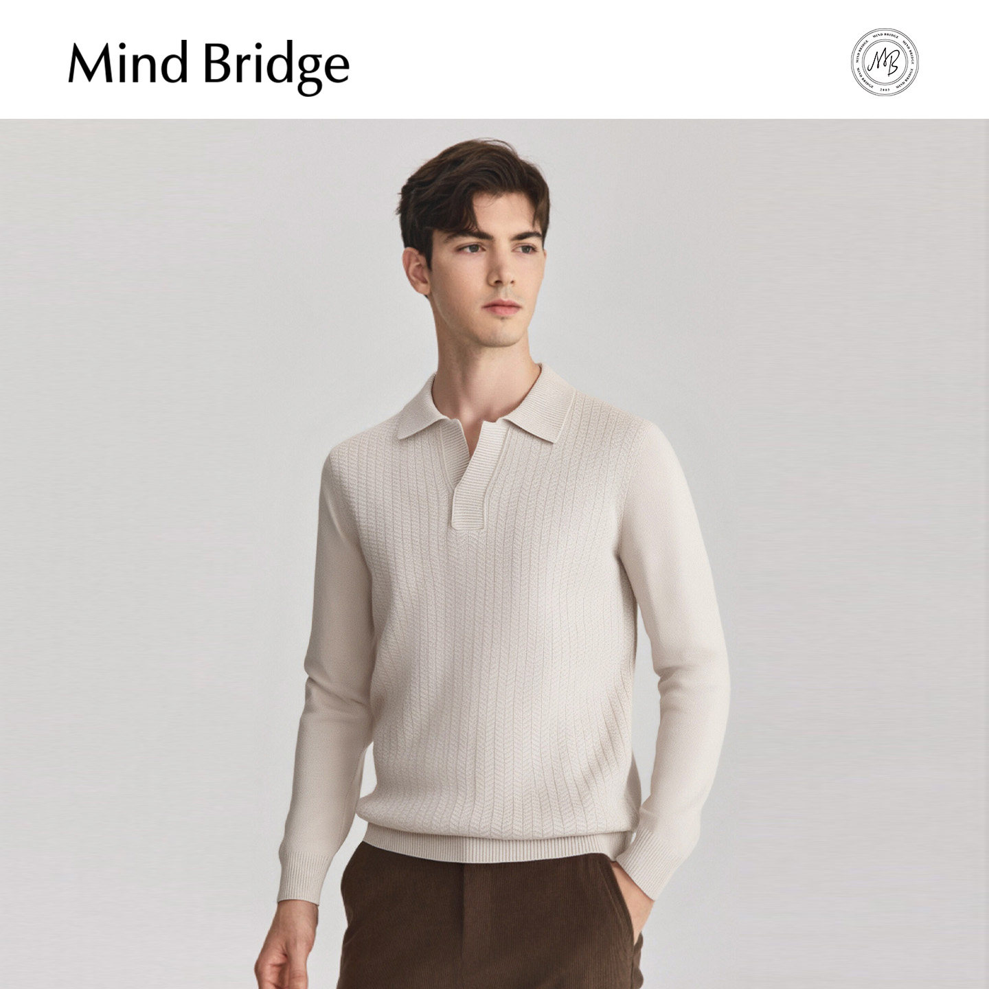 2025年秋老钱风肌理感针织男士 绵羊毛 海鸥领毛衣 Bridge Mind