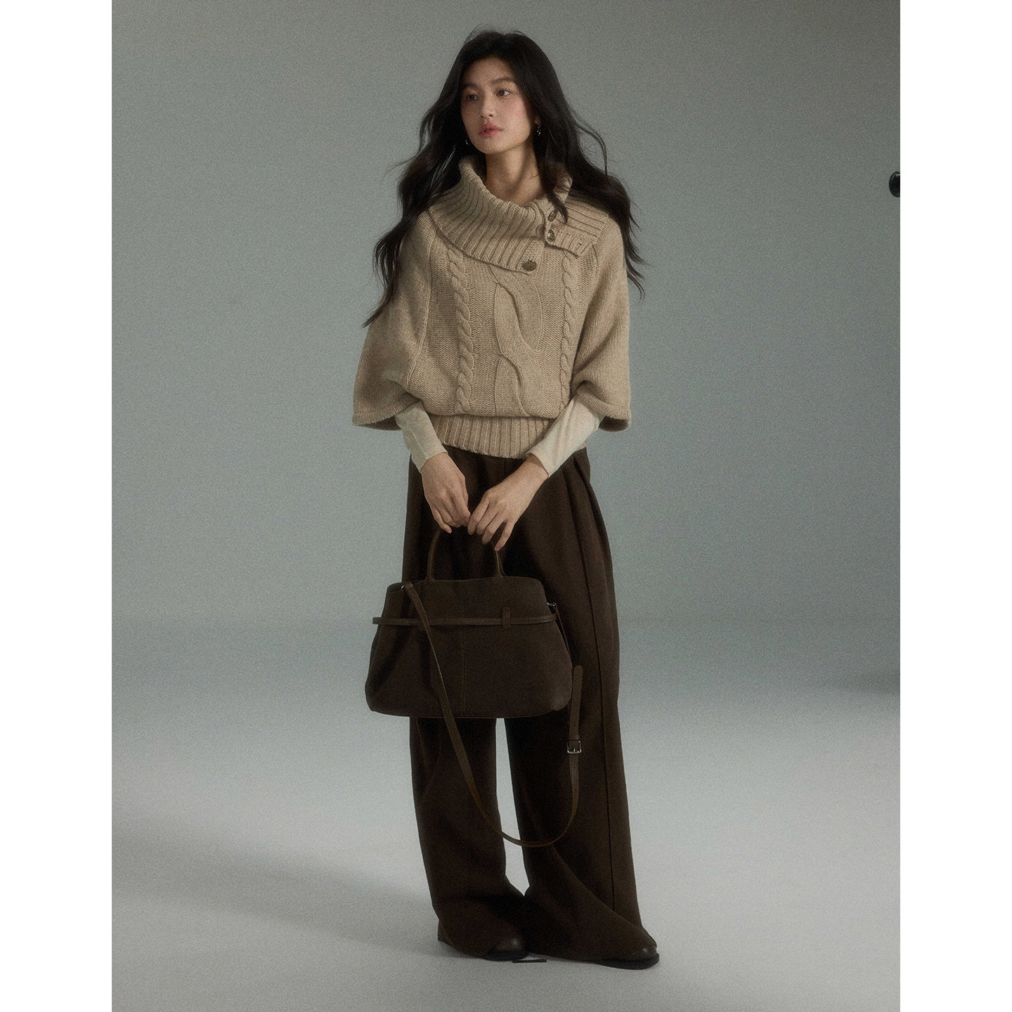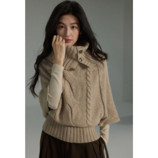 女秋宽松麻花毛衣 慵懒复古高级感高领斗篷针织衫 贰羊设计 忆安