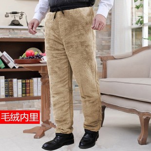 加肥加大码 外穿加绒加厚爸爸宽松爷爷老人保暖长裤 男冬季 老年棉裤