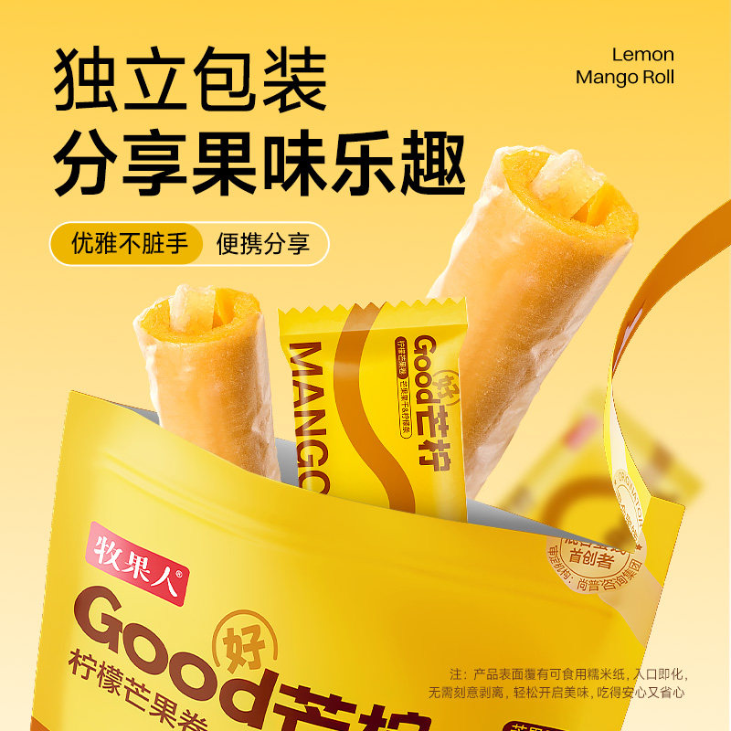 牧果人芒果干柠檬卷Good好芒柠138g网红酸甜蜜饯果干办公休闲零食