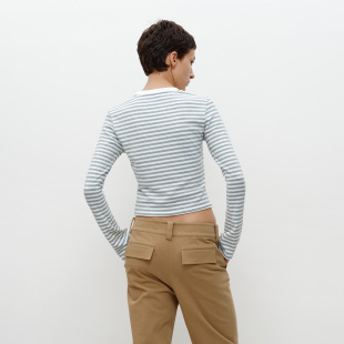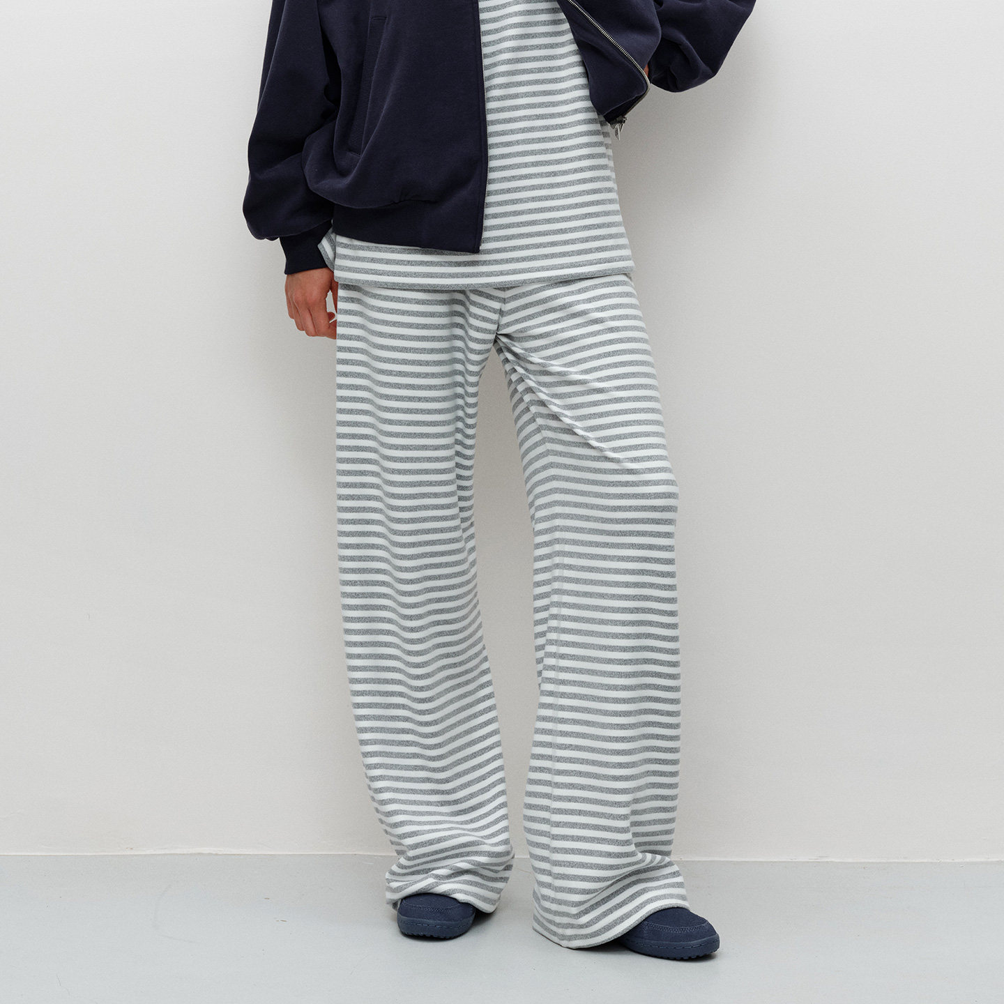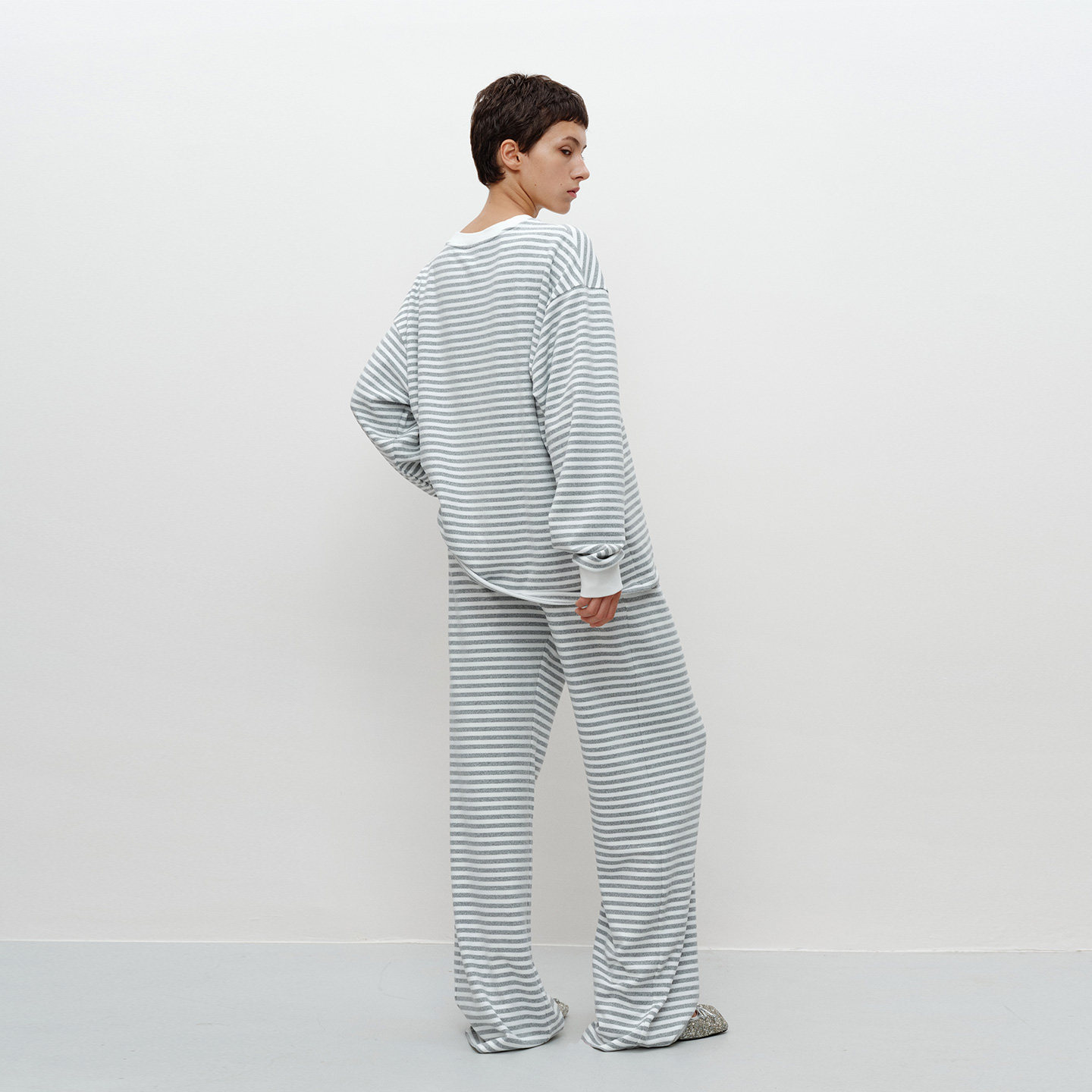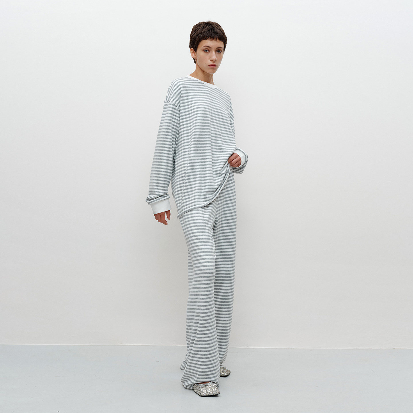 宽松长裤 FILGood 宽松T恤 合体喇叭袖 浅花灰白条纹云朵套装