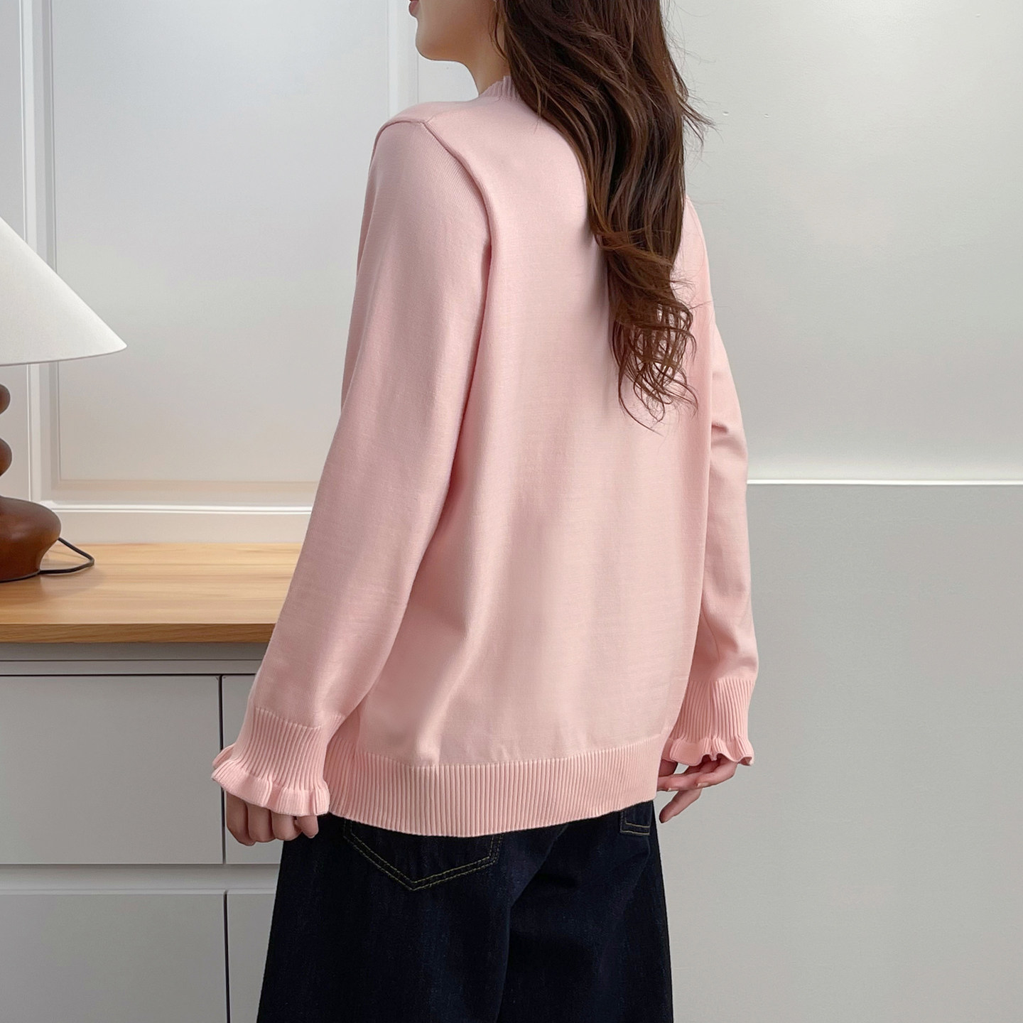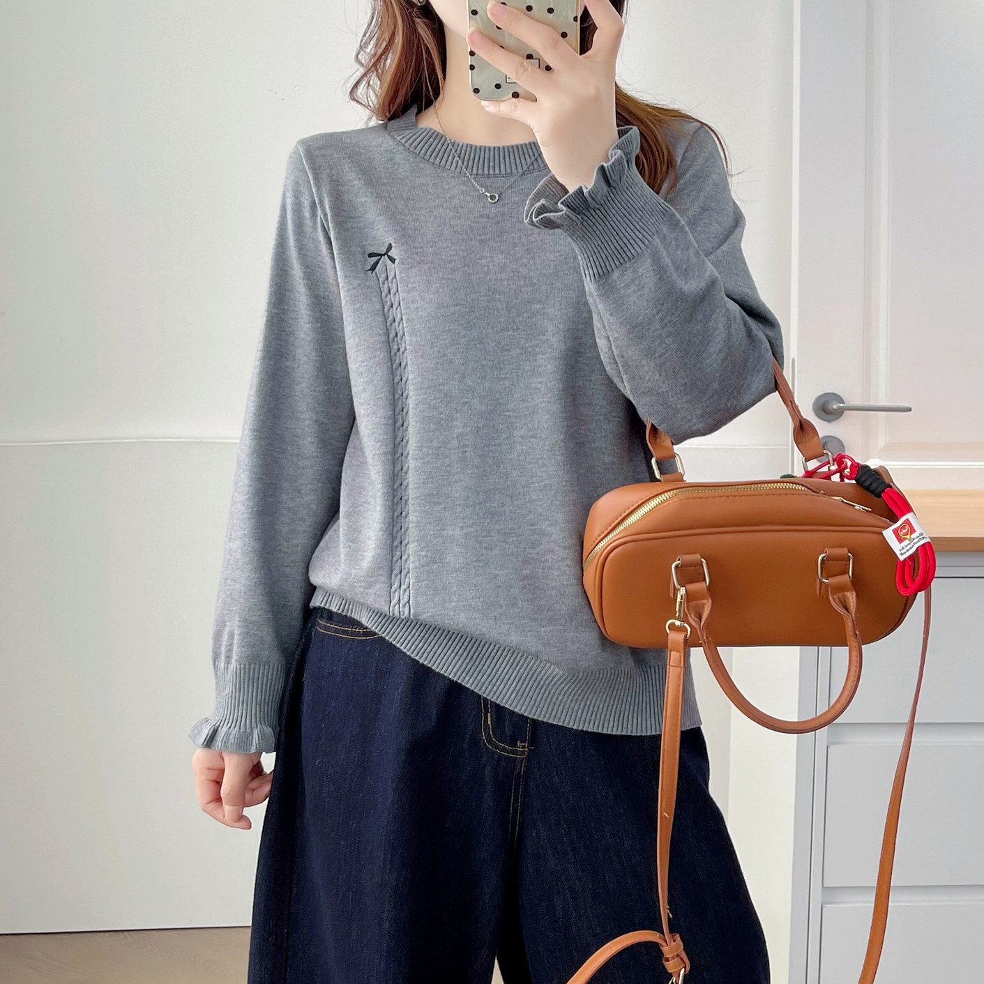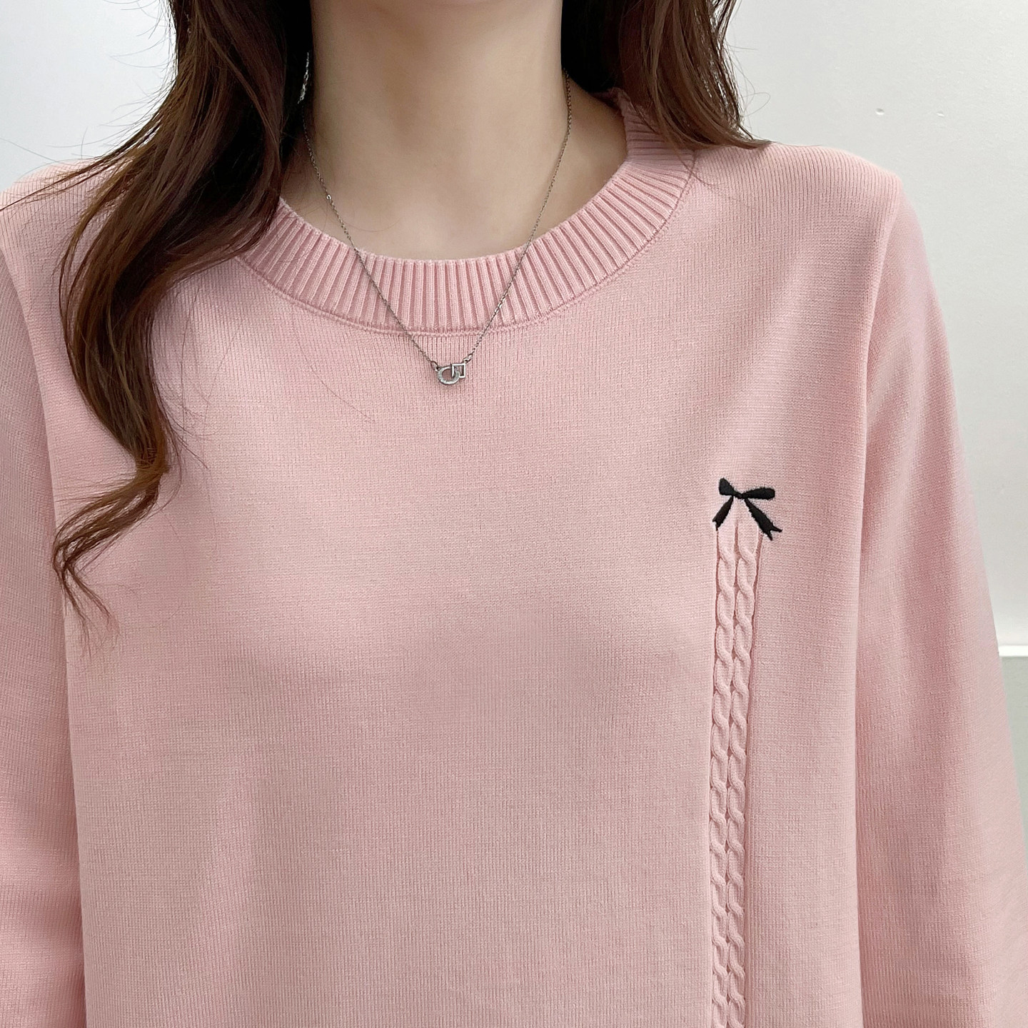 上衣女2025秋季 蝴蝶结刺绣花瓣袖 新款 时尚 口毛衣 大码 胖妹妹针织衫