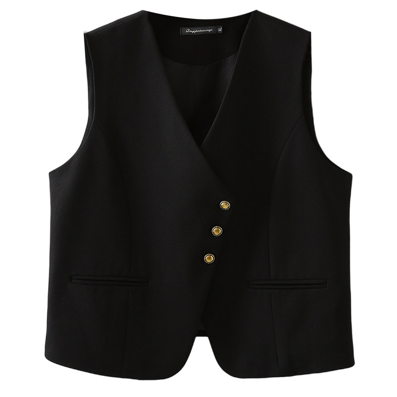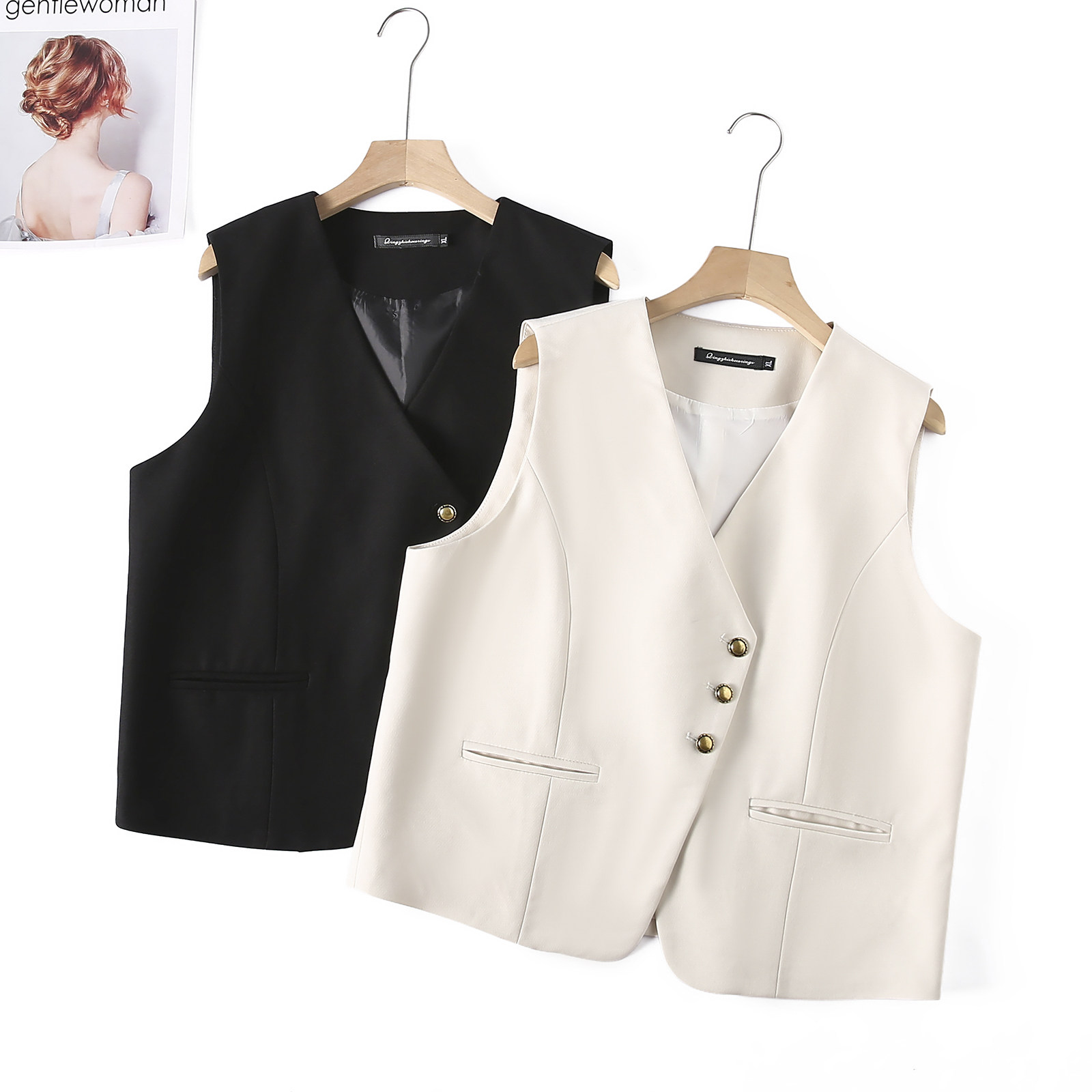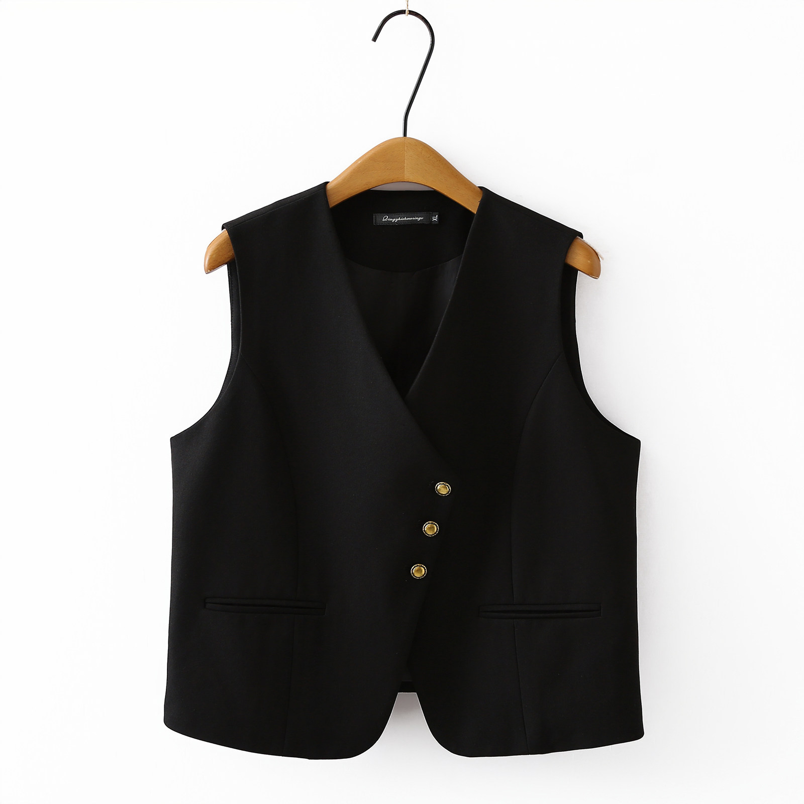女装 坎肩背心宽松显瘦不规则纽扣西装 秋新款 V领无袖 马夹 韩版 大码