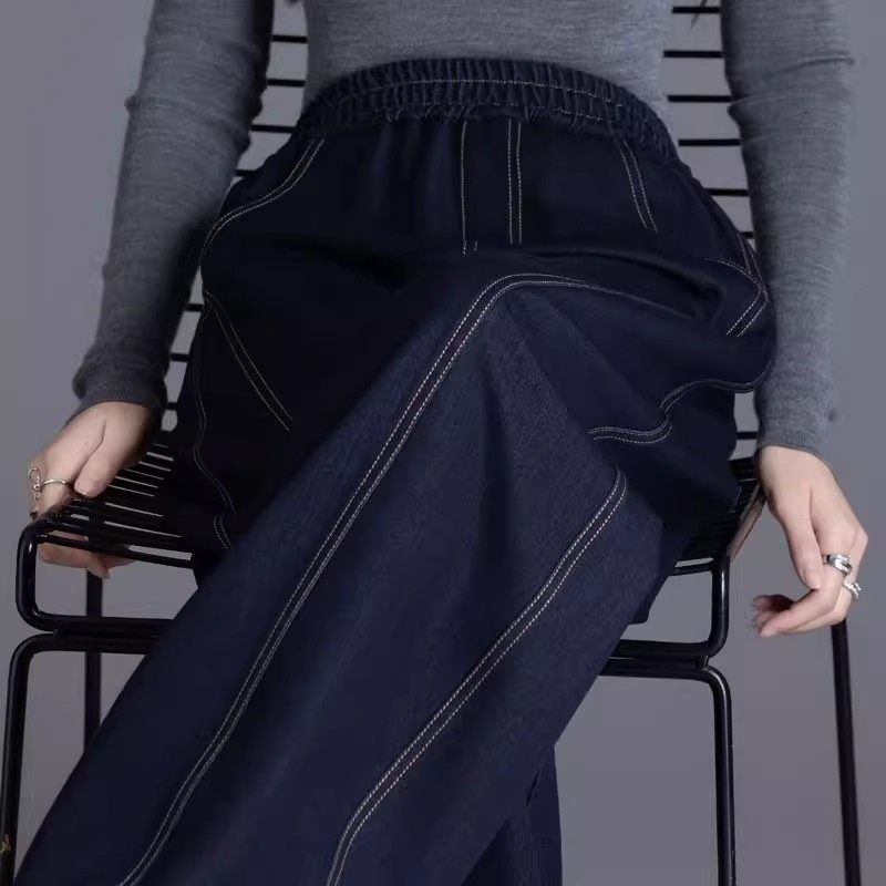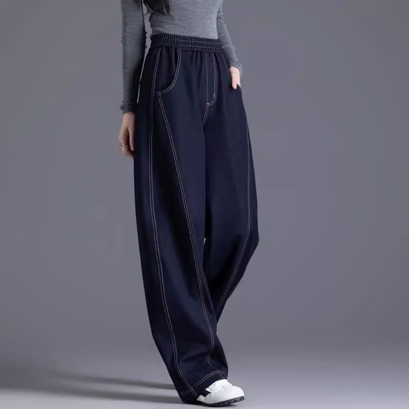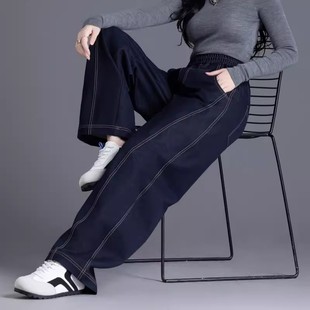 香蕉宽松显瘦镰刀弯刀裤 秋冬季 阔腿2025新款 松紧高腰丹宁蓝牛仔裤