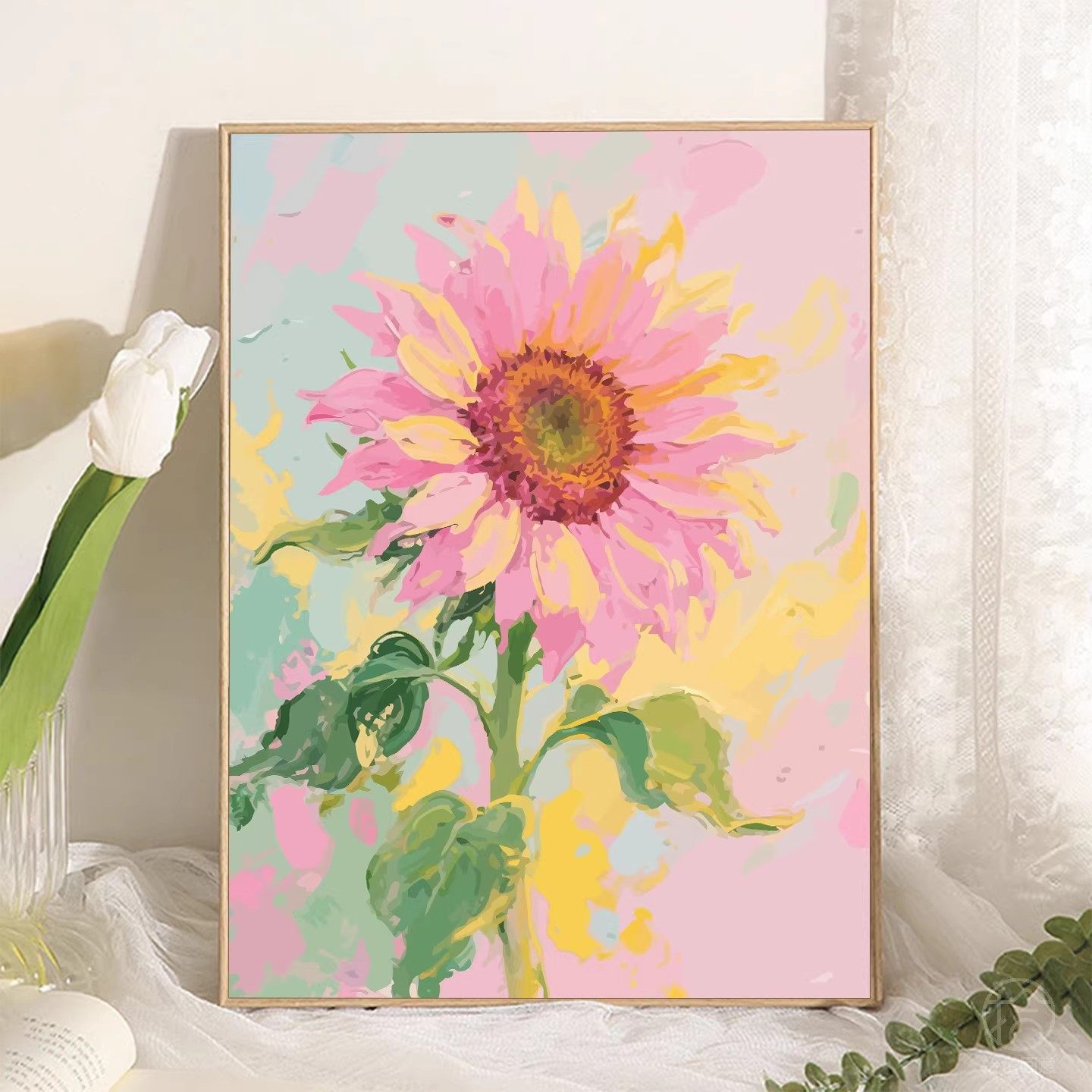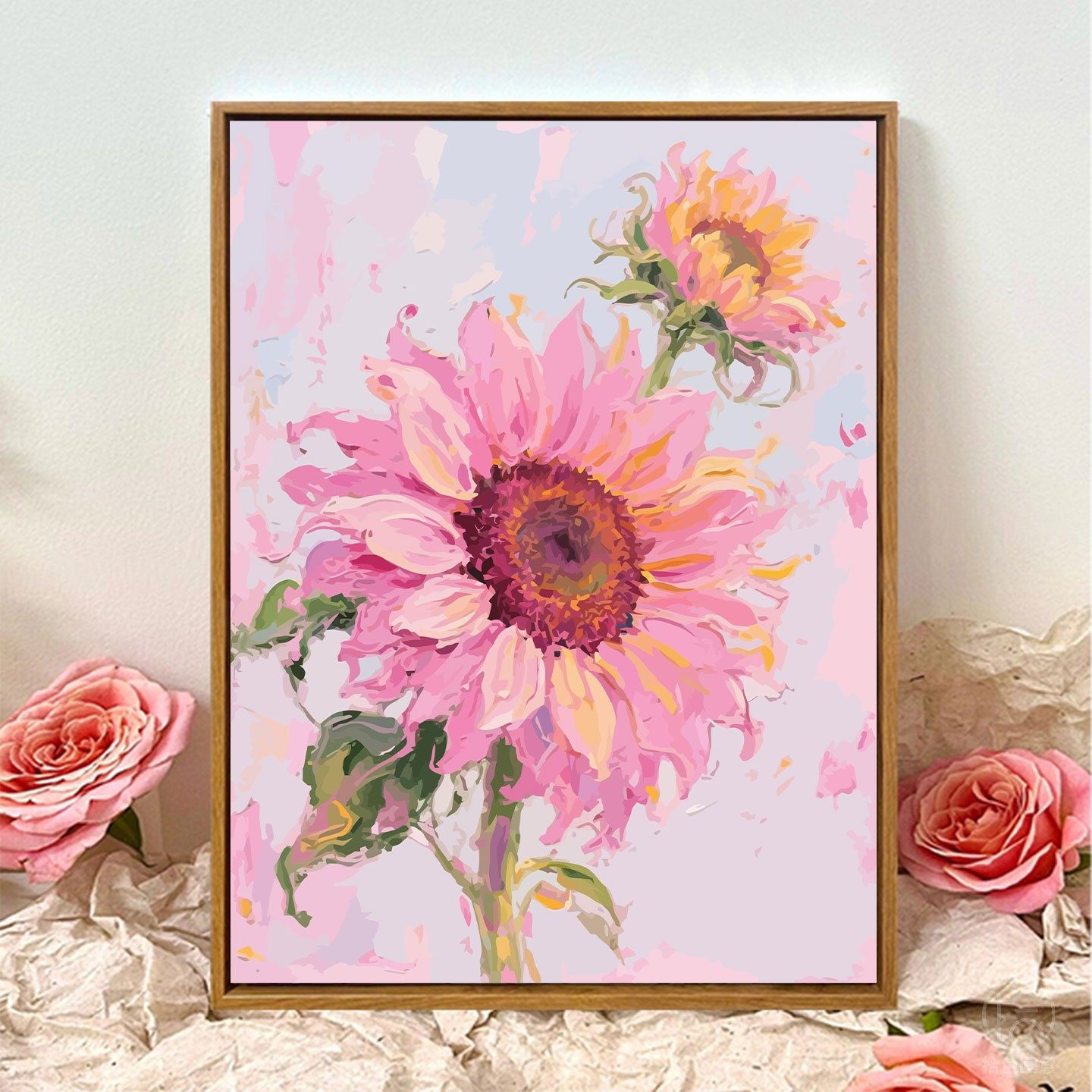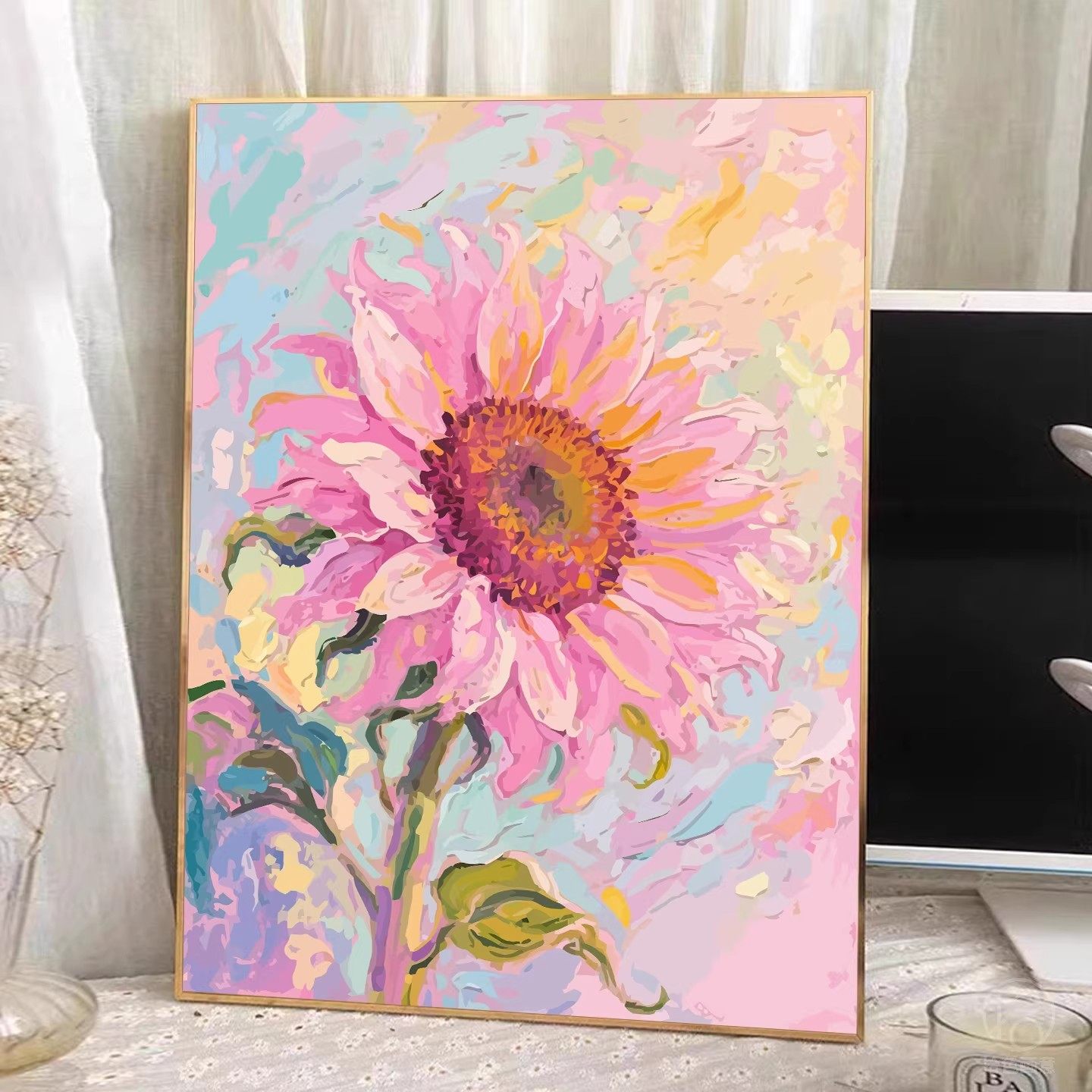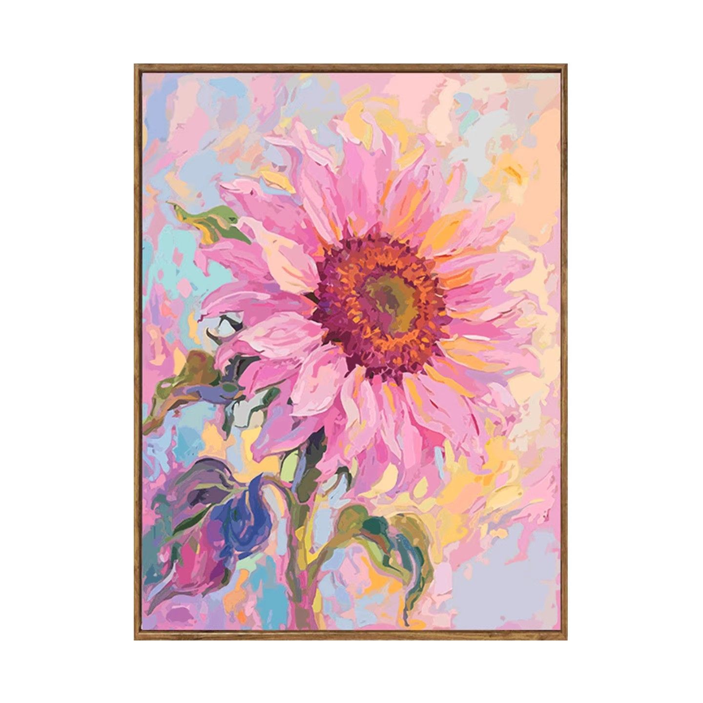 粉色向日葵花卉装 饰画成品仿油画水彩治愈唯美高级感卧室客厅挂画