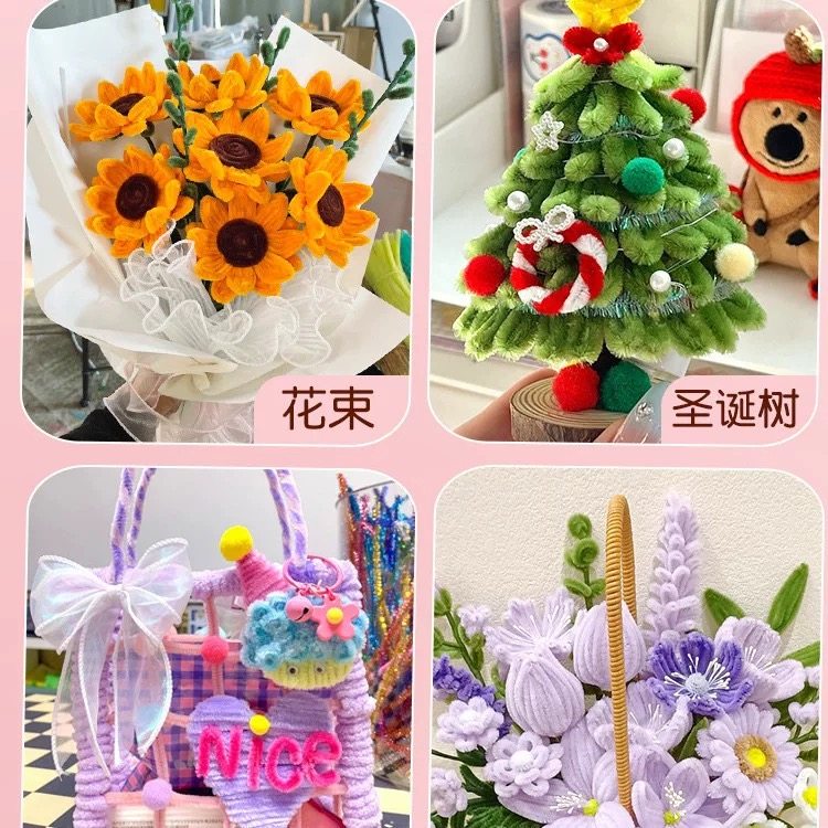 扭扭棒手工diy花束材料包全套加密加粗毛条儿童幼儿园创意手工