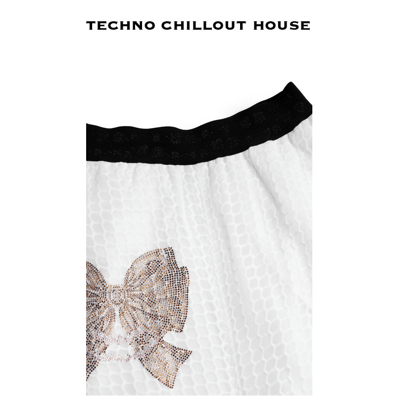 TCH轻奢烫钻工艺时尚 休闲百搭蝴蝶结半裙女T75A22E1003私服tch