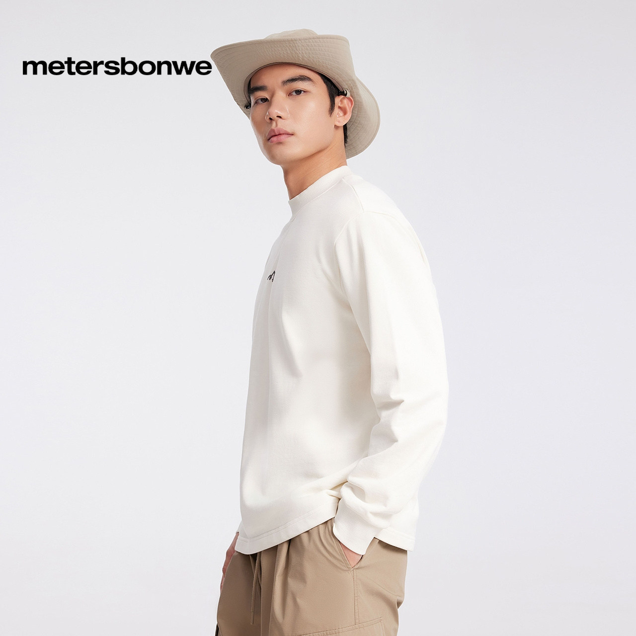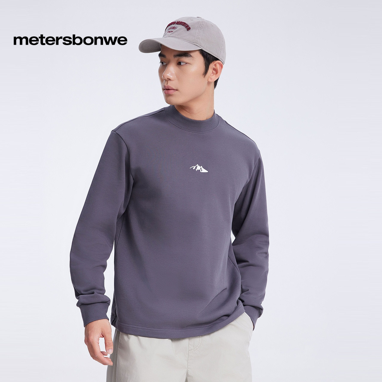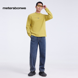 春夏新款 美特斯邦威男女同款 山系印花针织套头卫衣 商场同款