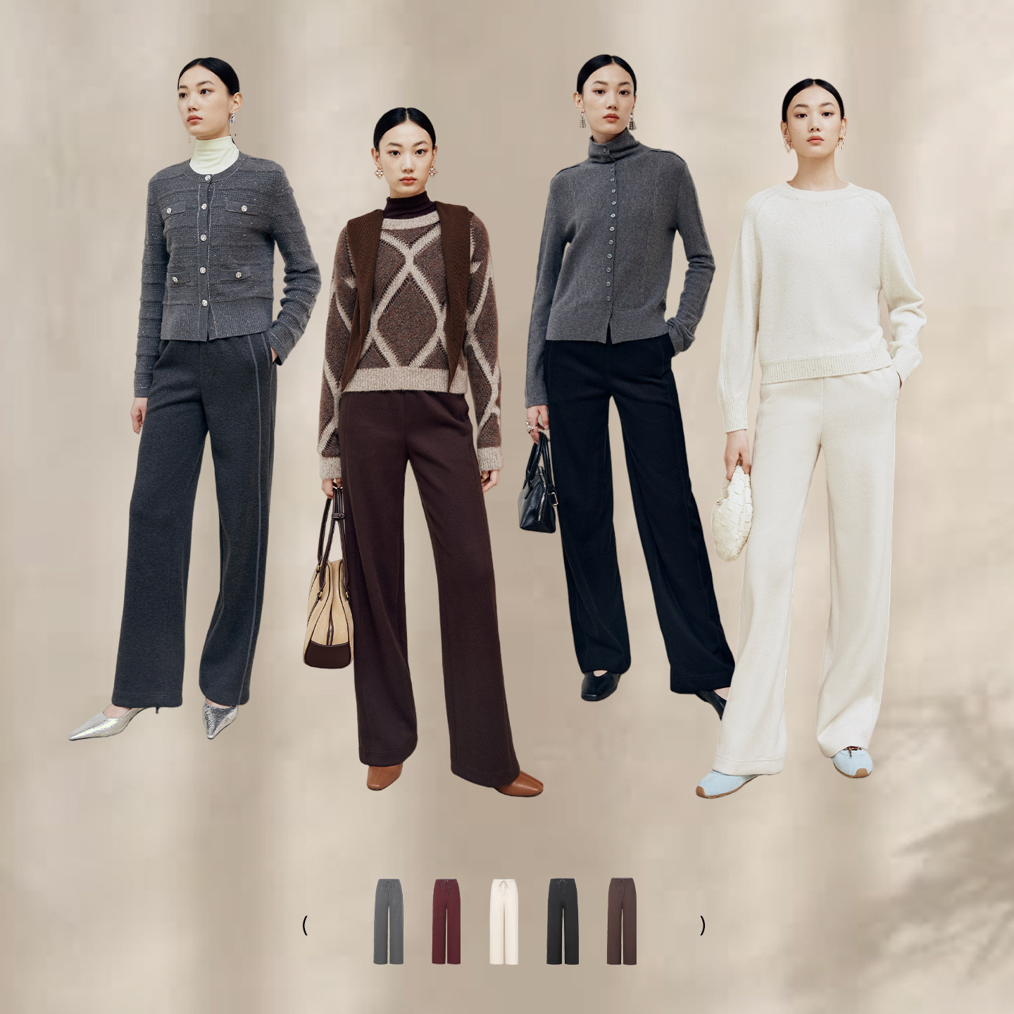 6406A 女25冬新款 FS时尚 显瘦撞色抽绳宽松直筒休闲裤