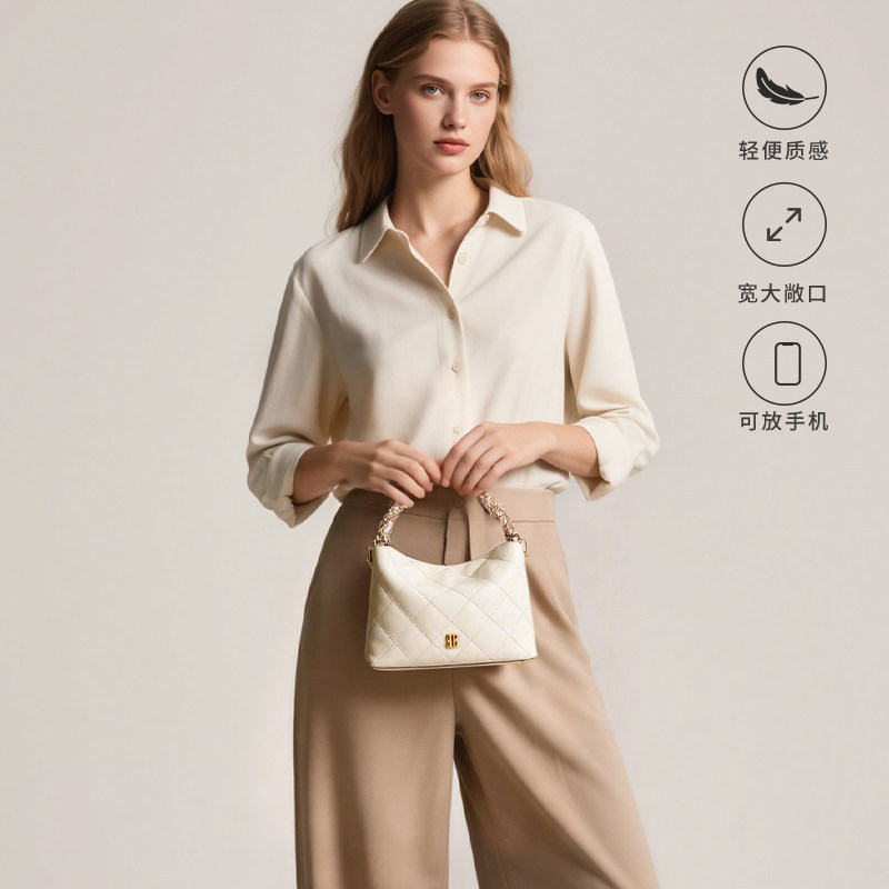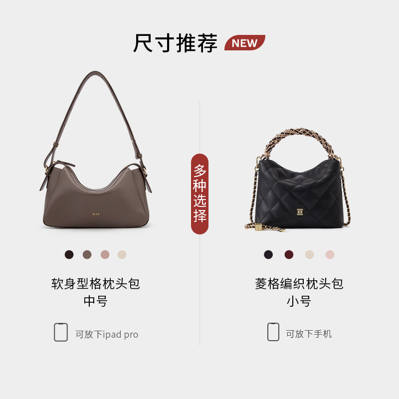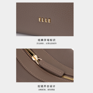ELLE女包头层牛皮真皮枕头包上班通勤斜挎包单肩包高级感女士包包