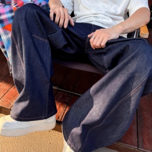 休闲小众cleanfit长裤 男vintage美式 复古直筒牛仔裤 MADWITCH新款