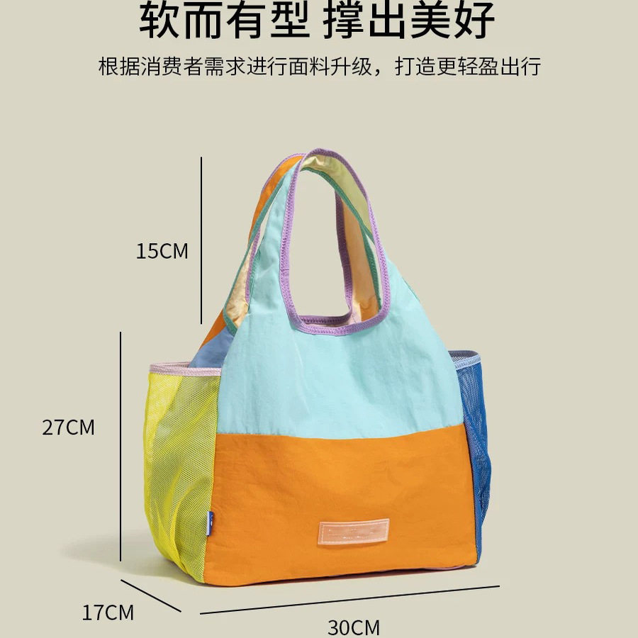 撞色多巴胺手提包2026新款 百搭轻便尼龙布包女 可折叠托特包时尚
