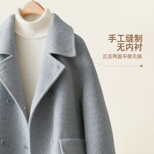 IHIMI海谧翻领双面呢羊毛大衣女冬季 高级感气质呢外套 时髦中长款