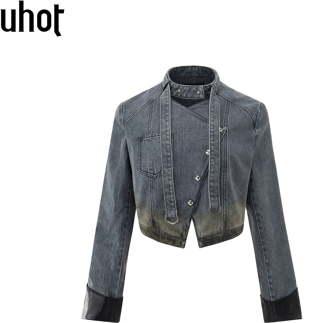 301590 女士带领袢水洗渐变牛仔短外套银泰百货 UHOT 秋冬新款