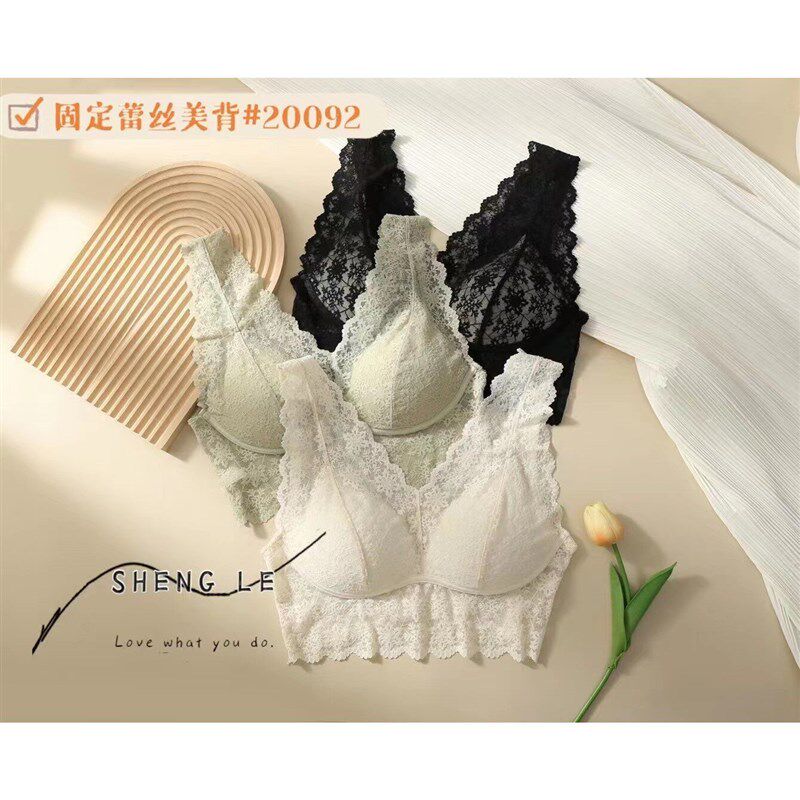 法式 美背蕾丝吊带一体固定乳胶杯带胸垫无钢圈小胸聚拢宽肩带内衣