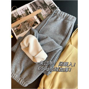 闭眼入 女冬新款 650g加绒加厚 休闲卫裤 哈伦束脚裤 一条过冬