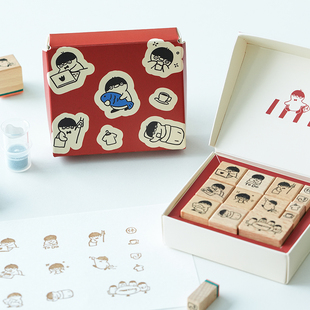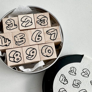 慢生活熊猫公园印章 饰章烘焙教室星星主题立体数字章打工鹅 白日几何木质印章套装 木头手帐装