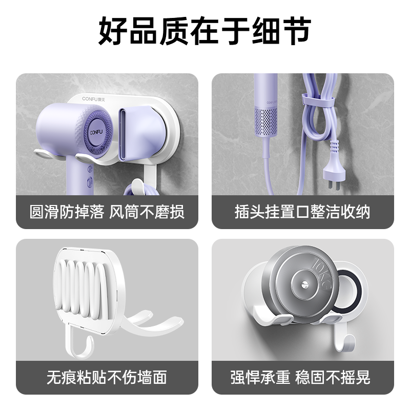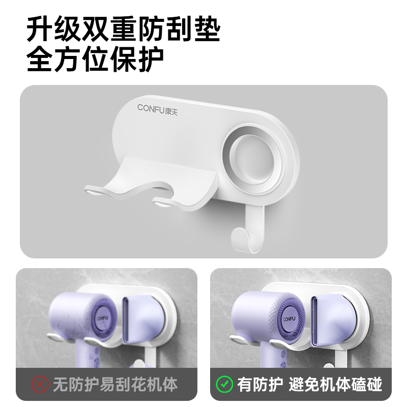 康夫电吹风机支架置物架免打孔风筒壁挂架子适用磁吸风嘴放置浴室