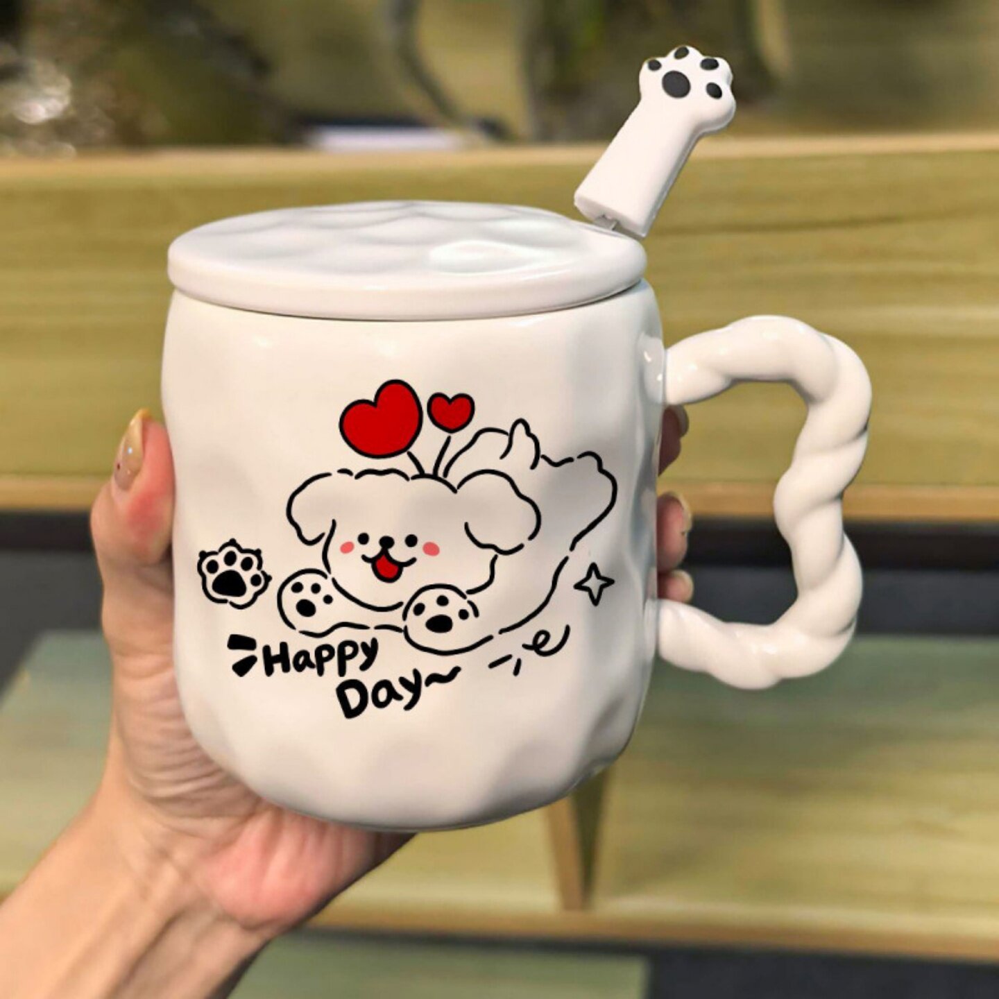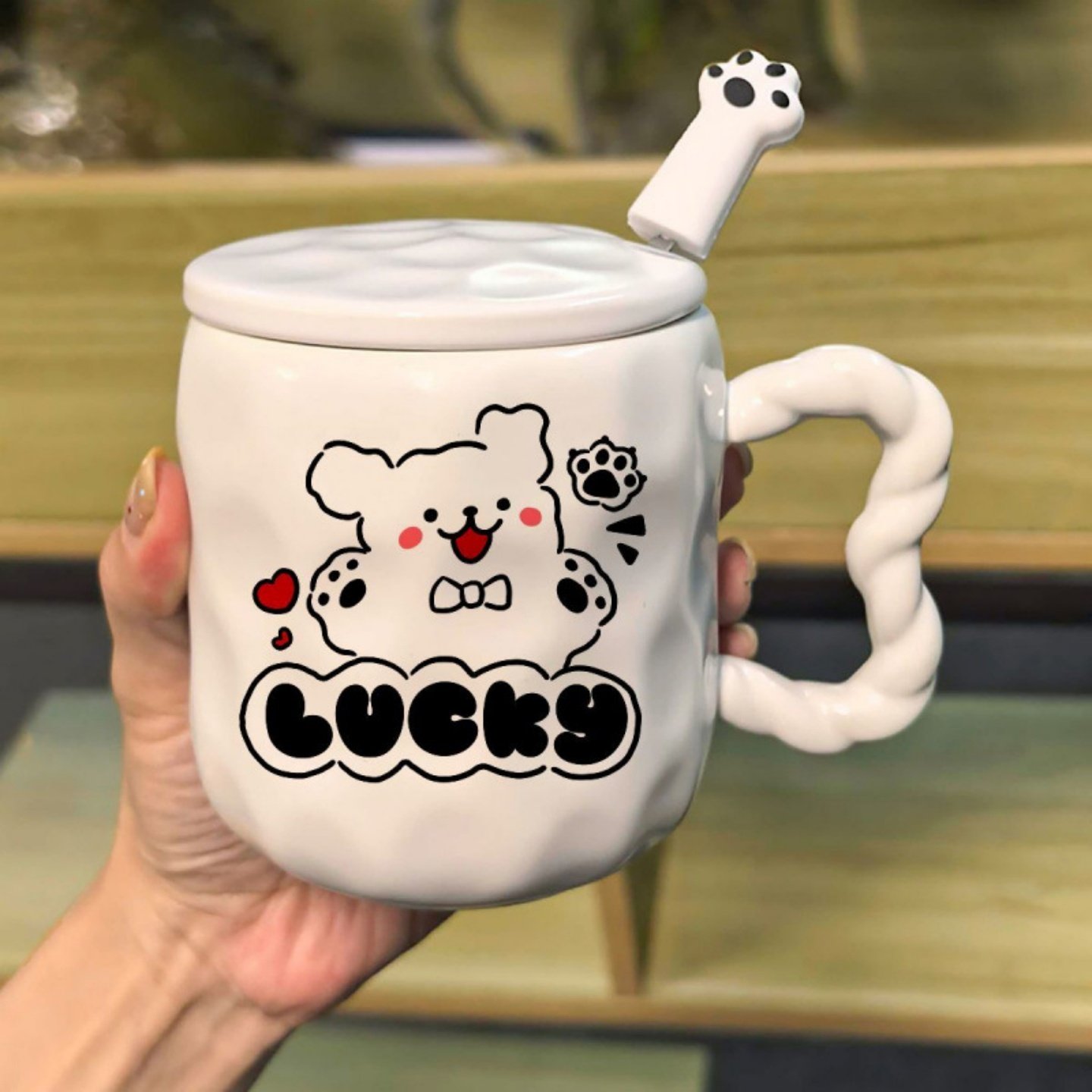 舍里喜庆带盖马克杯家用高颜值早餐杯咖啡杯办公室喝水杯子伴手礼