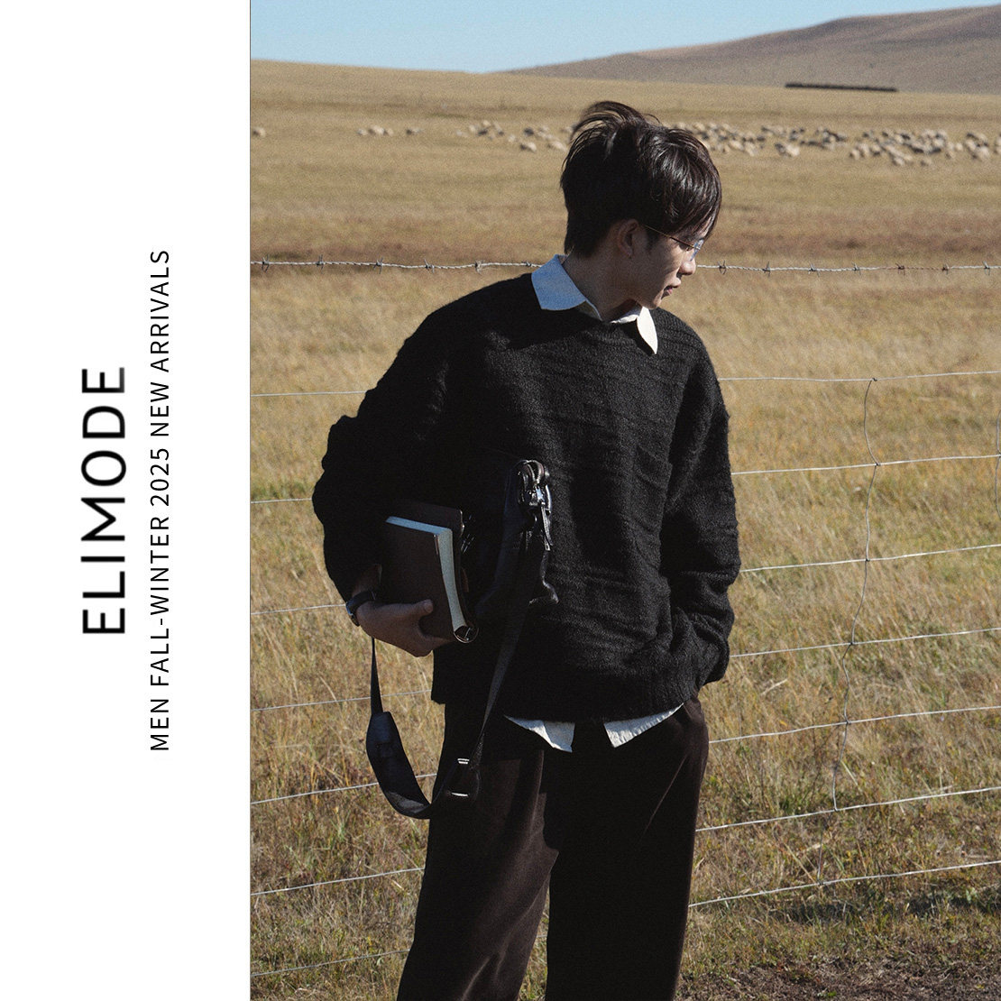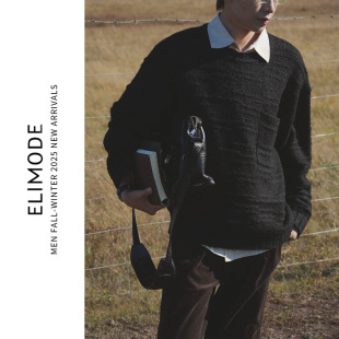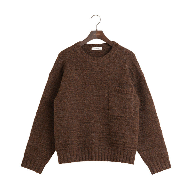 ELI 秋冬带贴袋羊毛混纺软糯休闲圆领套头内搭针织毛衣 牧马人