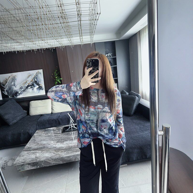 大码 显瘦减龄薄透长袖 女装 新款 防晒t恤 胖mm2025年夏装 缤纷小衫