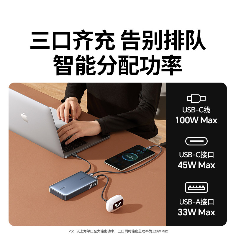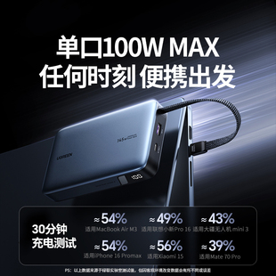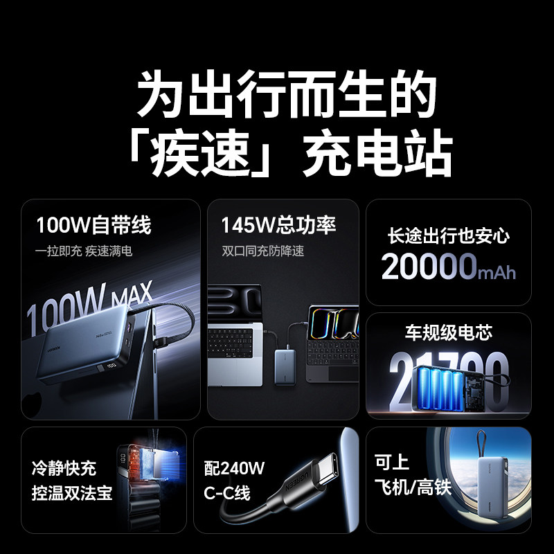 旅行充电宝145w便捷快充自带线20000毫安大容量适用iphone17 绿联2025新款 16安卓移动电源可上飞机 3C认证