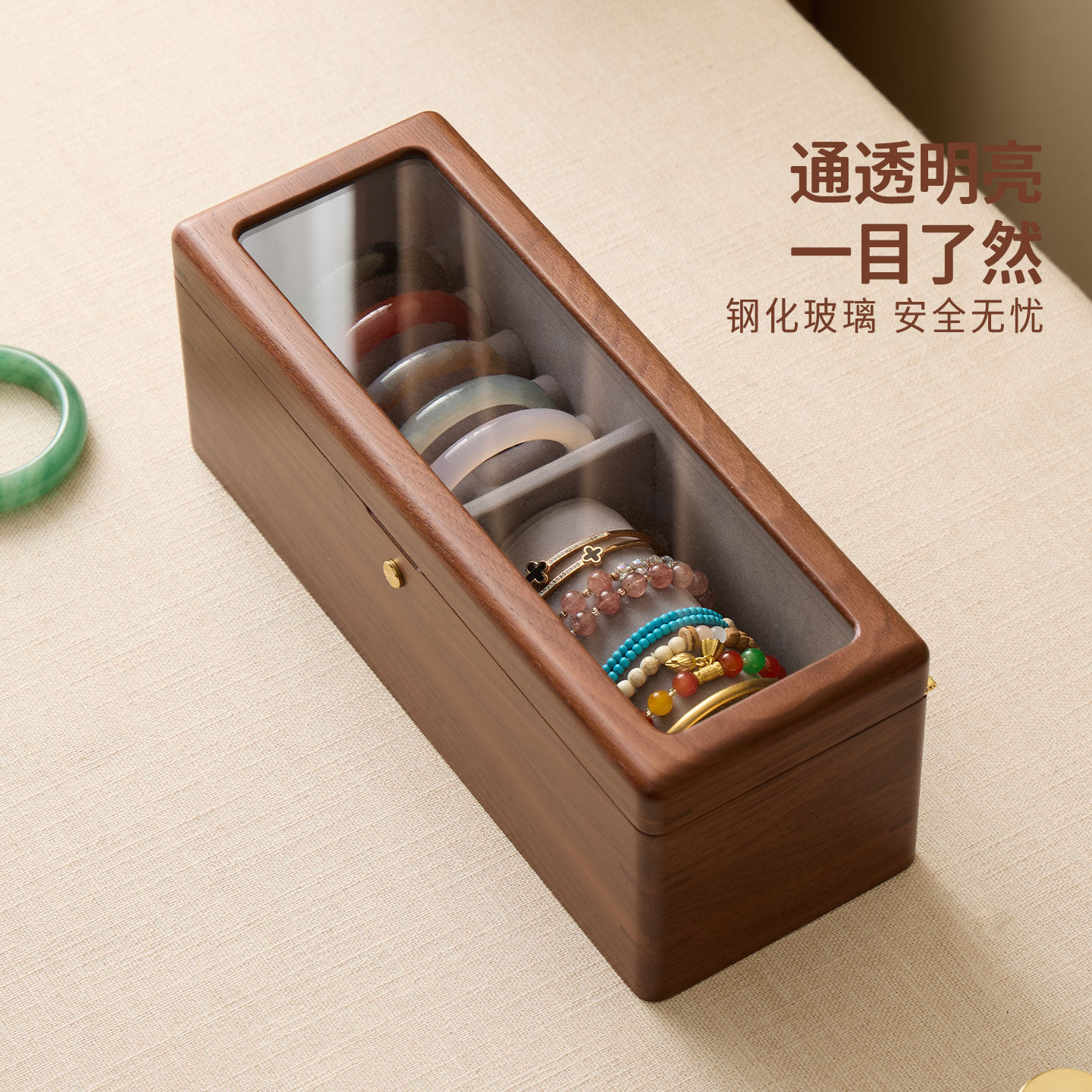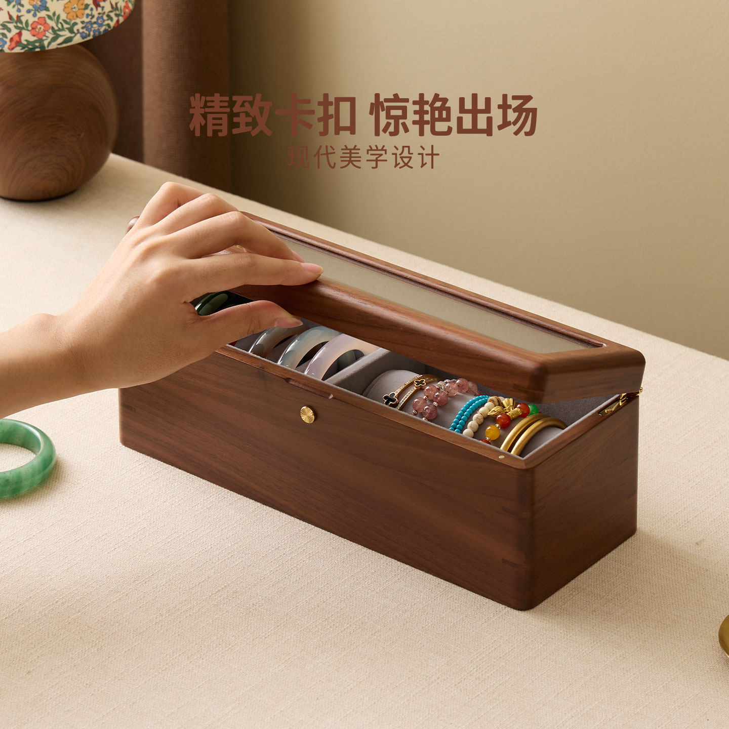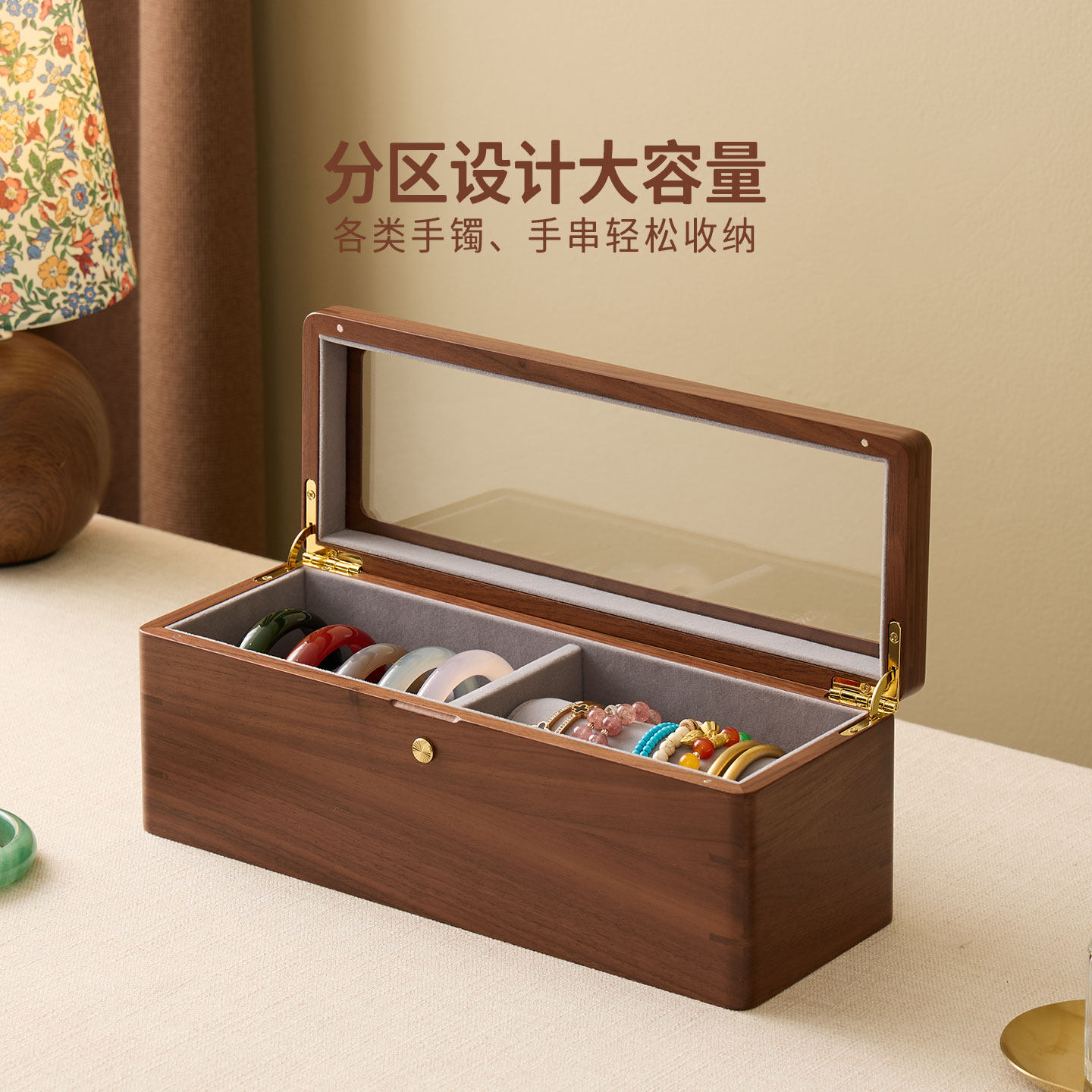 首饰收纳盒高档精致胡桃木纹大容量耳钉水晶手串饰品文玩收纳盒子
