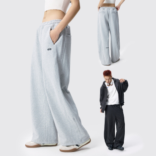 潮牌宽松直筒情侣运动卫裤 男女秋季 剪裁阔腿休闲弯刀裤 Remedy美式