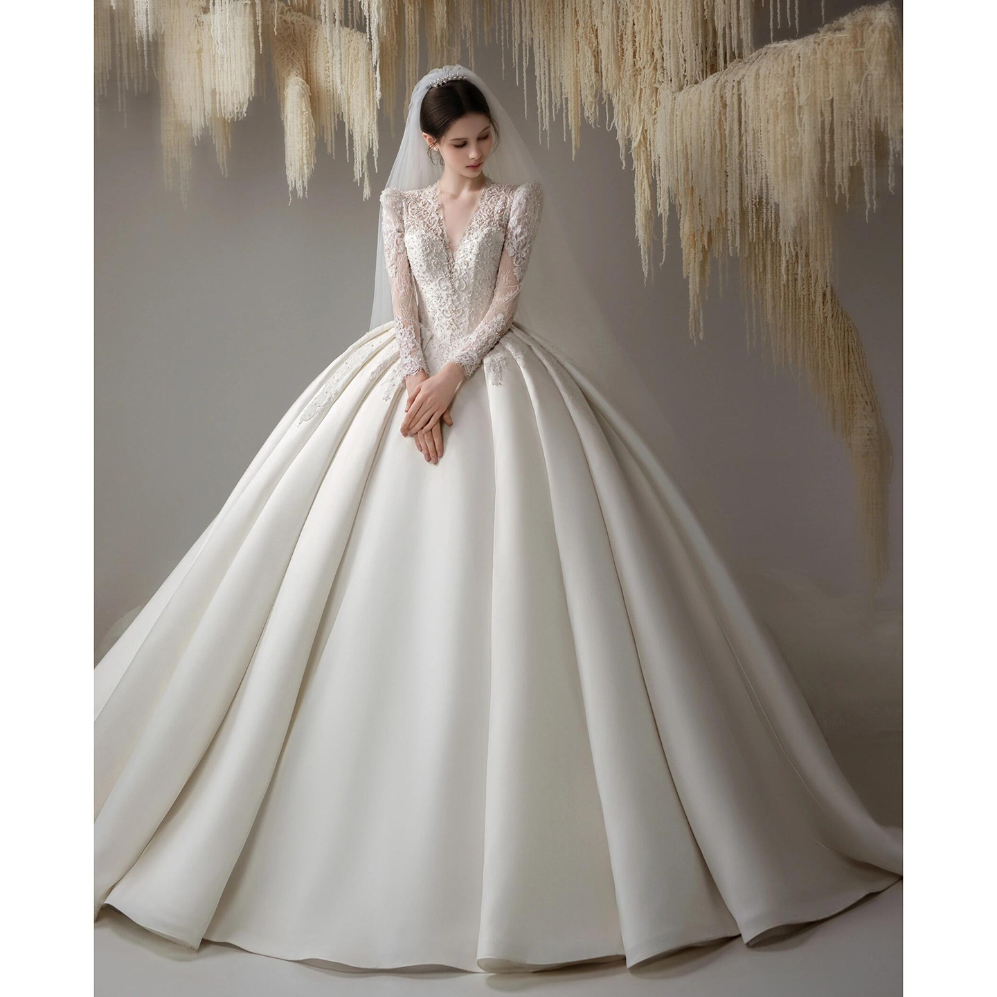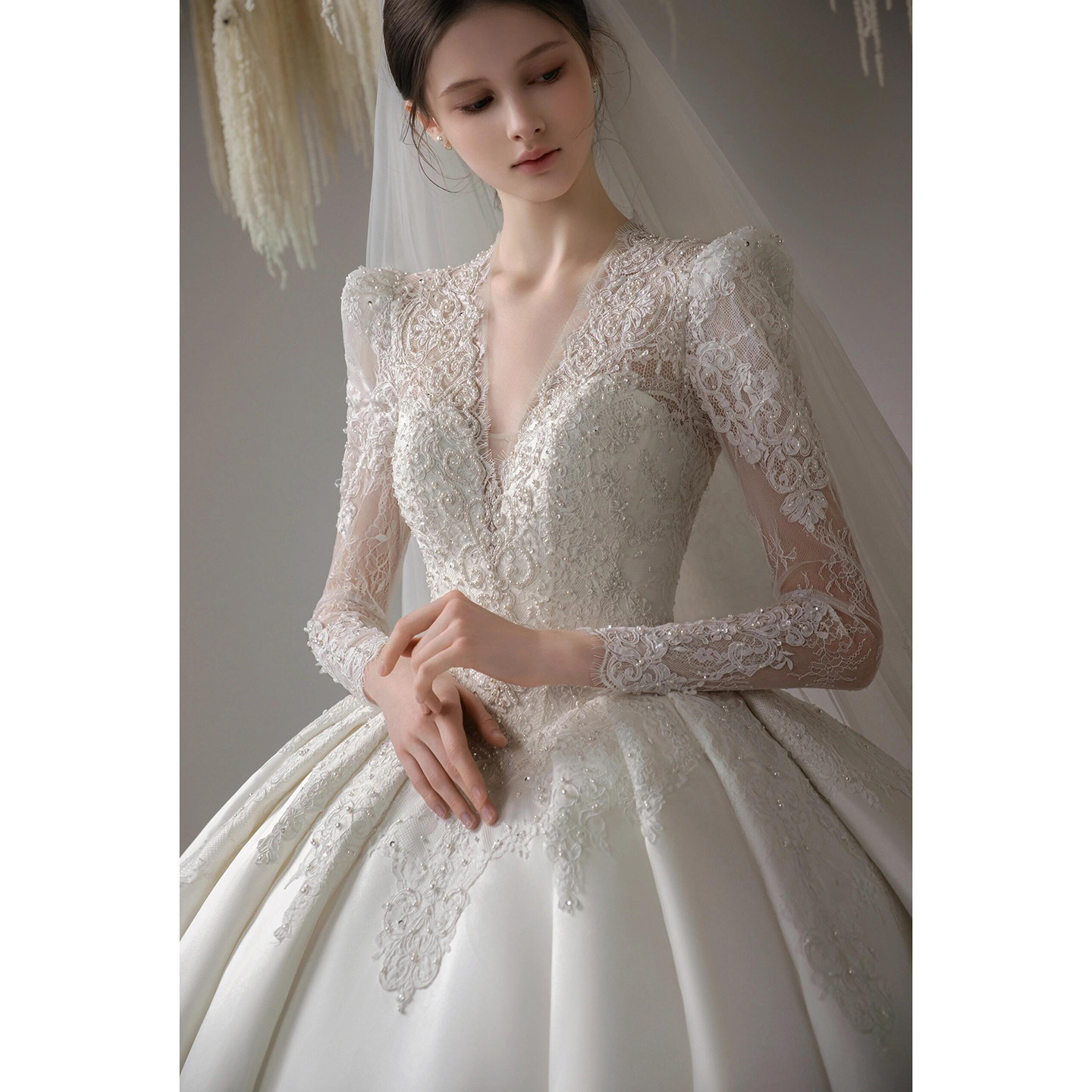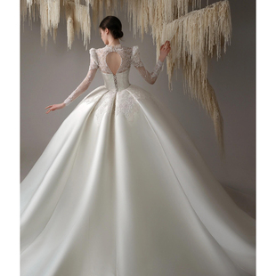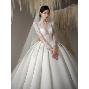 纱在逃公主迎宾纱法式 高级质感重工仪式 主纱 长袖 婚纱新娘2025新款