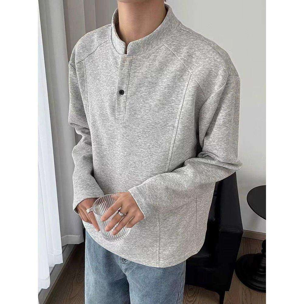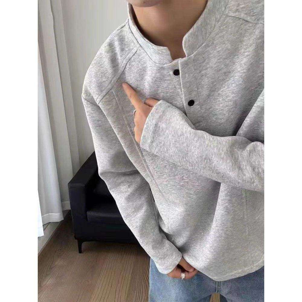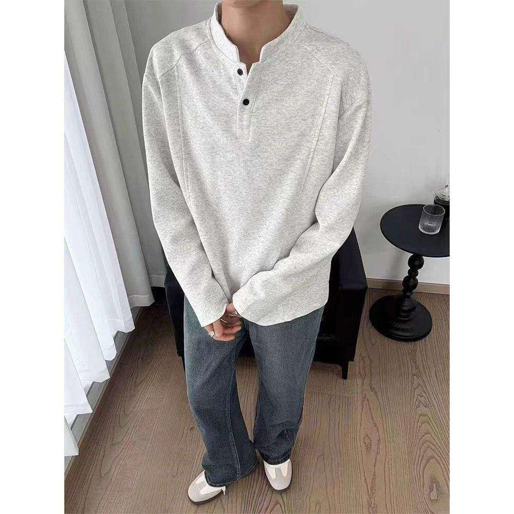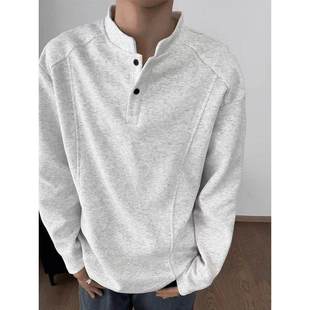 短宽boxy立领卫衣cleanfit打底衫 美式 秋季 t恤男款 潮牌 亨利领长袖