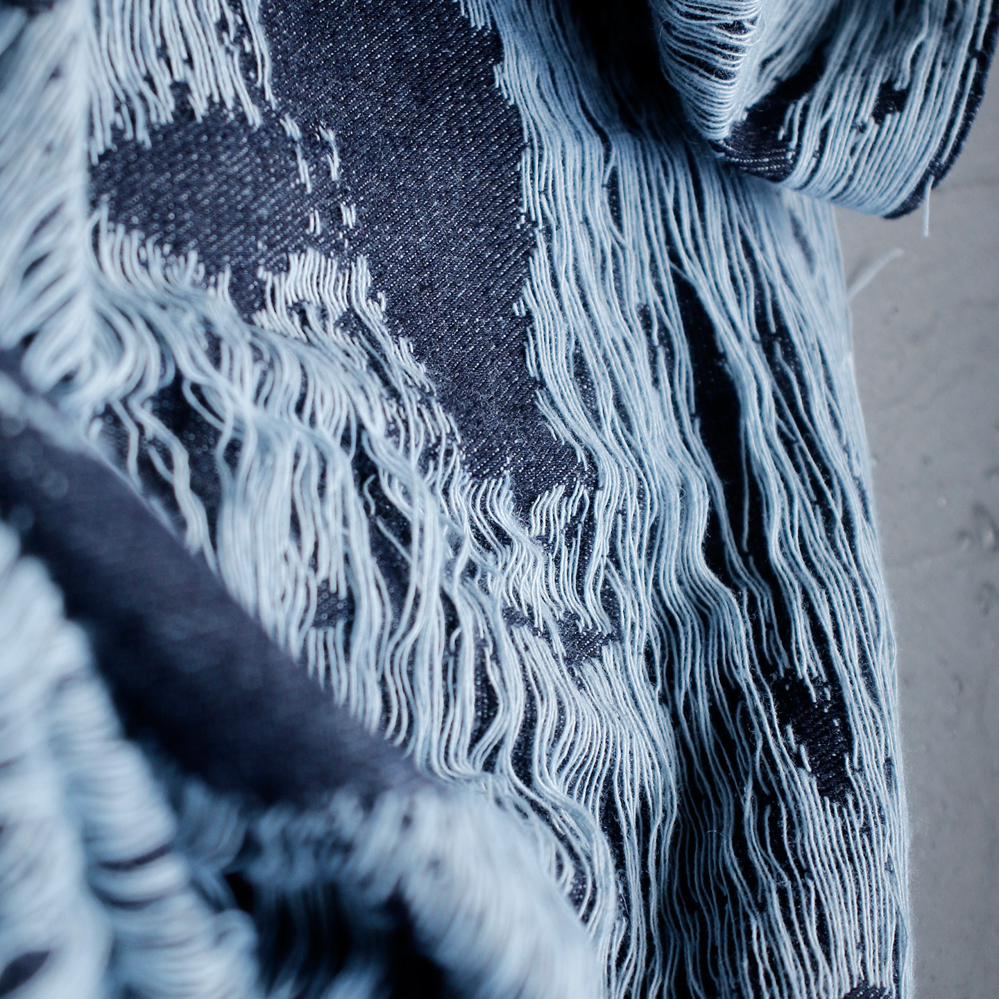 设计师布料 子服装 墟境重生 流苏做旧破烂磨毛牛仔面料改造外套裤