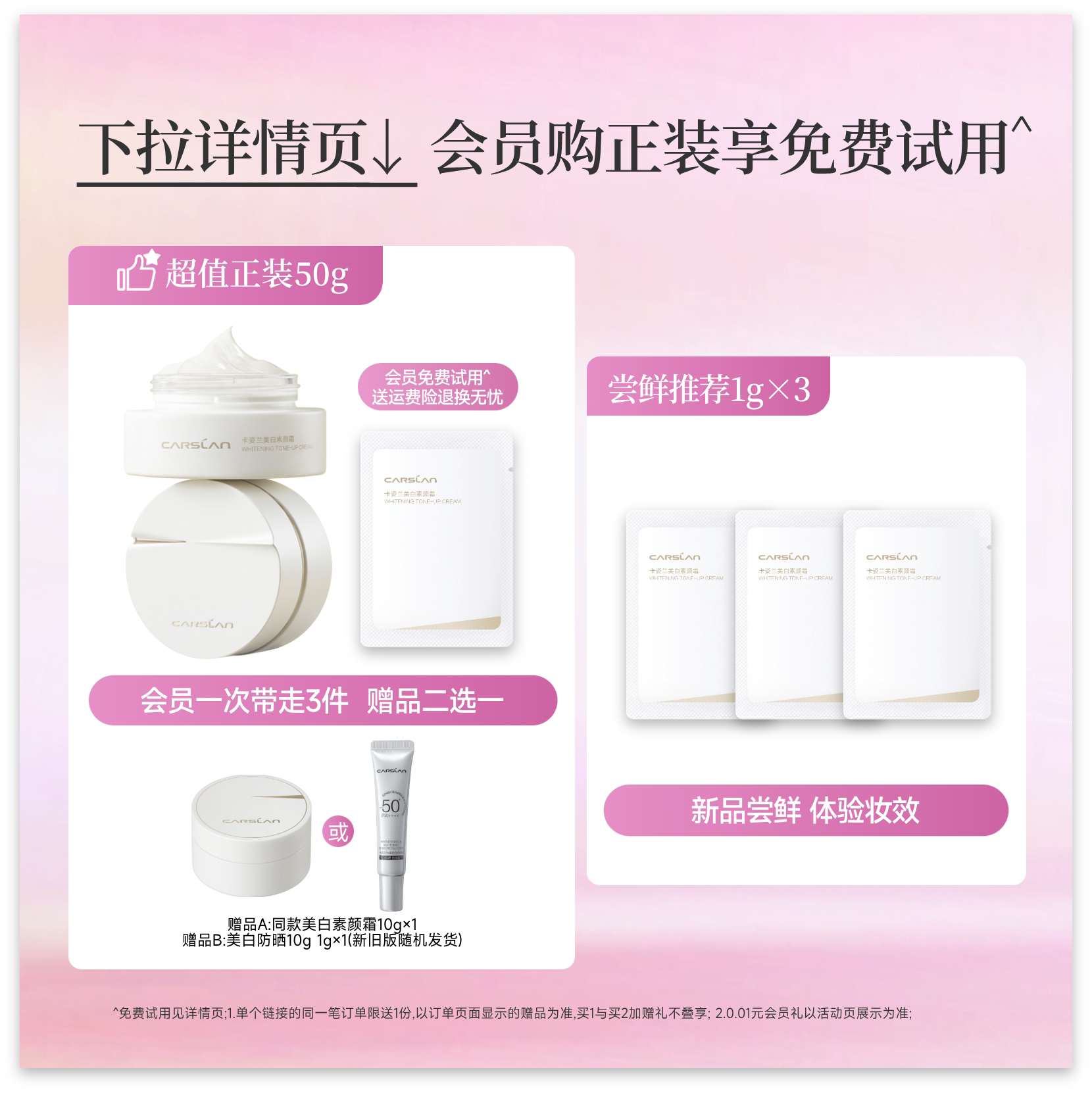 淡斑正品 提亮保湿 卡姿兰美白素颜霜小样3g散粉试用装 旗舰店 U先