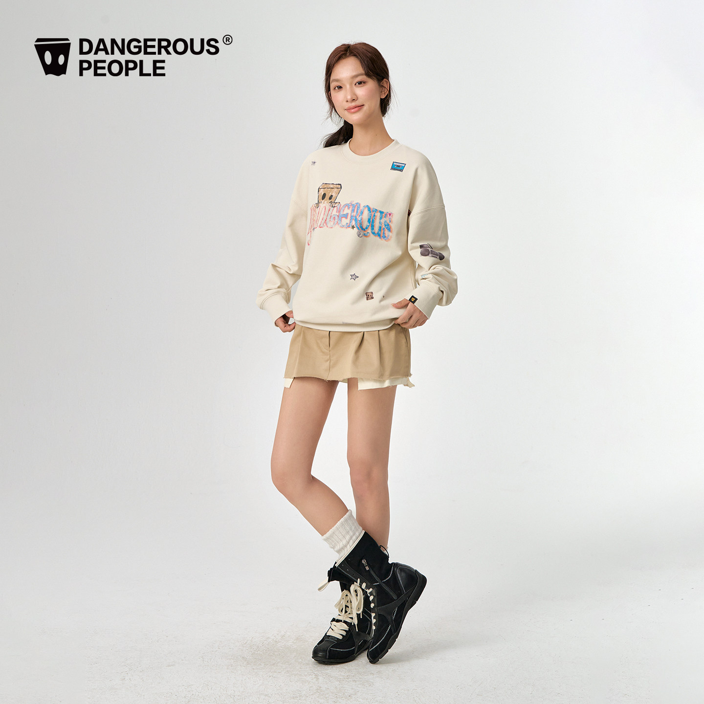 斜肩卫衣外套女宽松字母印花露肩针织上衣 美式 pusumede 纽约街头