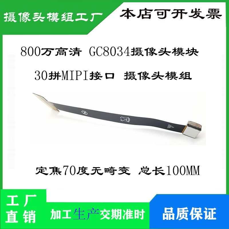 GC8034摄像头FPC总长100MM 800万像素120度无畸变镜头MIPI接口30P