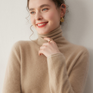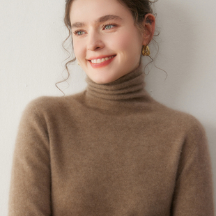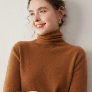 100%羊绒衫 慵懒高级感内搭可外穿黑白色高领毛衣 女秋冬羊毛打底衫