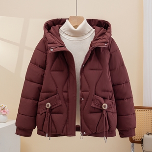 新款 棉服外套女2025冬季 加厚保暖连帽棉衣 收腰显瘦长款 胖mm特大码