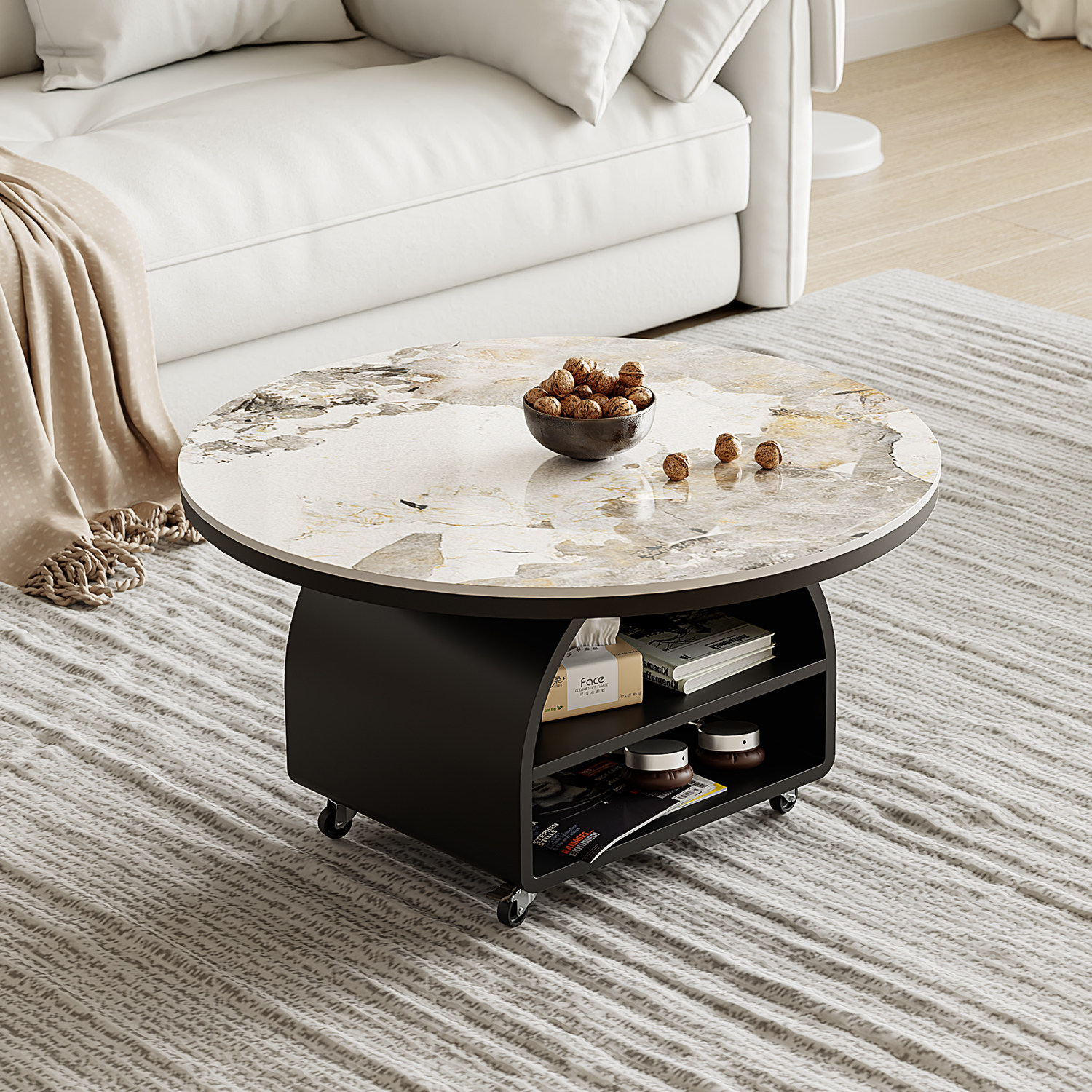 臻品阁可折叠旋转移动茶几小推车小户型沙发边几边柜两用餐桌茶桌