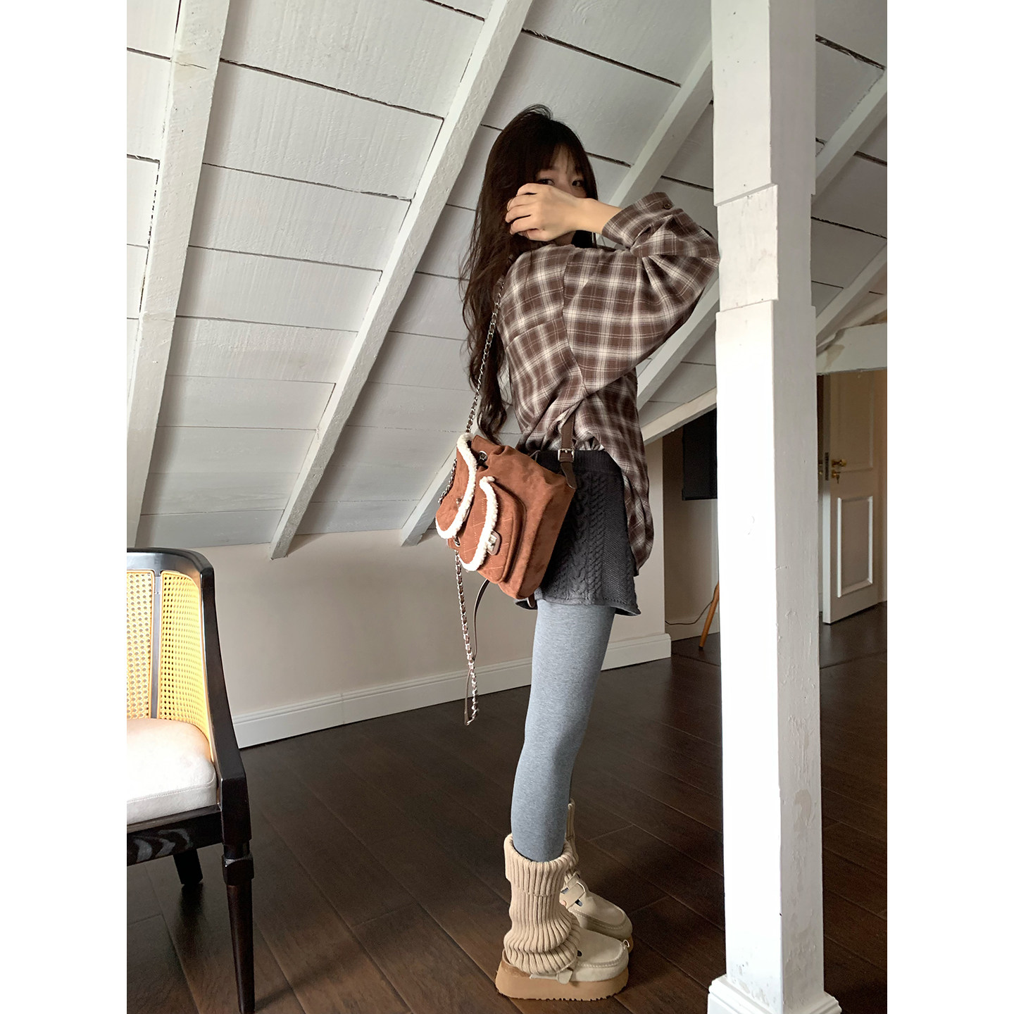 浅色糯米休闲裤 子 女秋冬加绒胖妹妹mm高腰宽松显瘦梨型身材阔腿裤