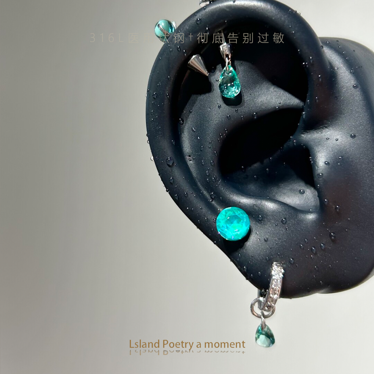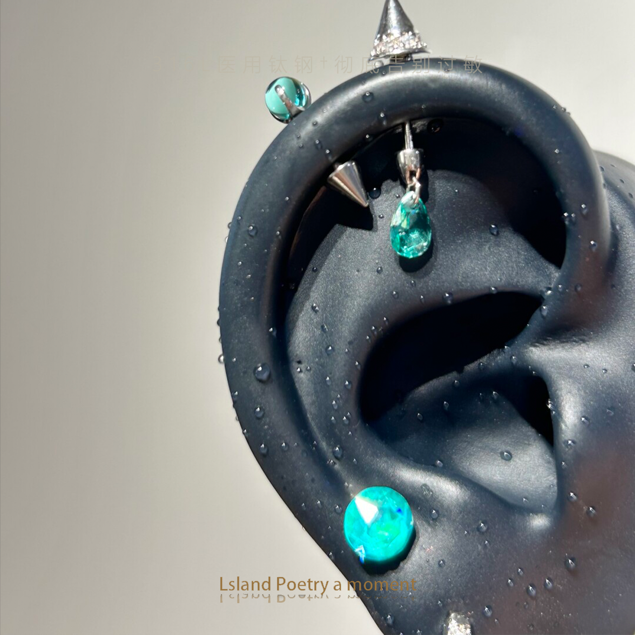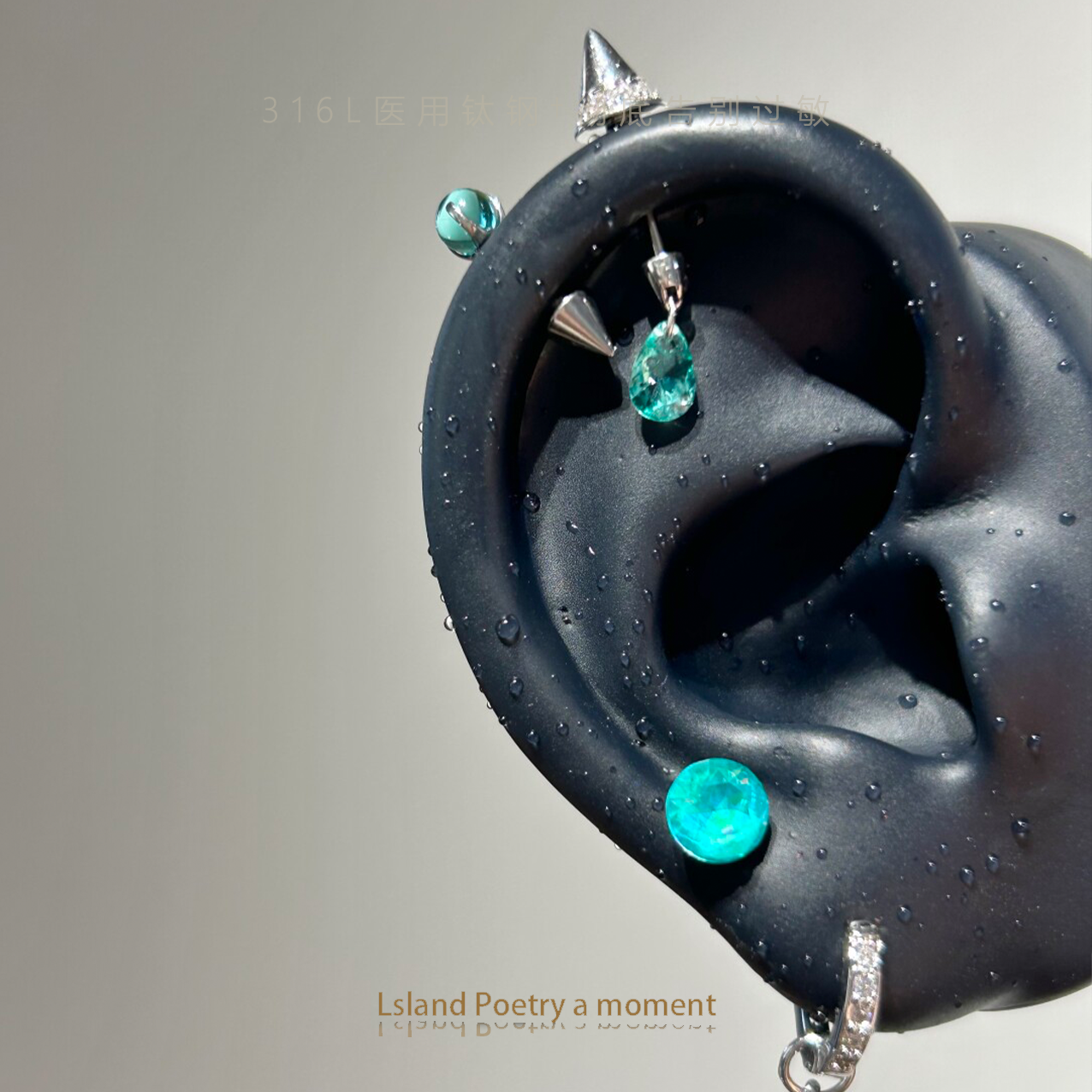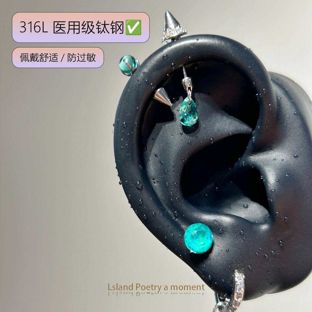 「Green Lake」医学级钛钢湖绿水滴恶魔耳钉医学用耳轮耳骨耳蜗钉