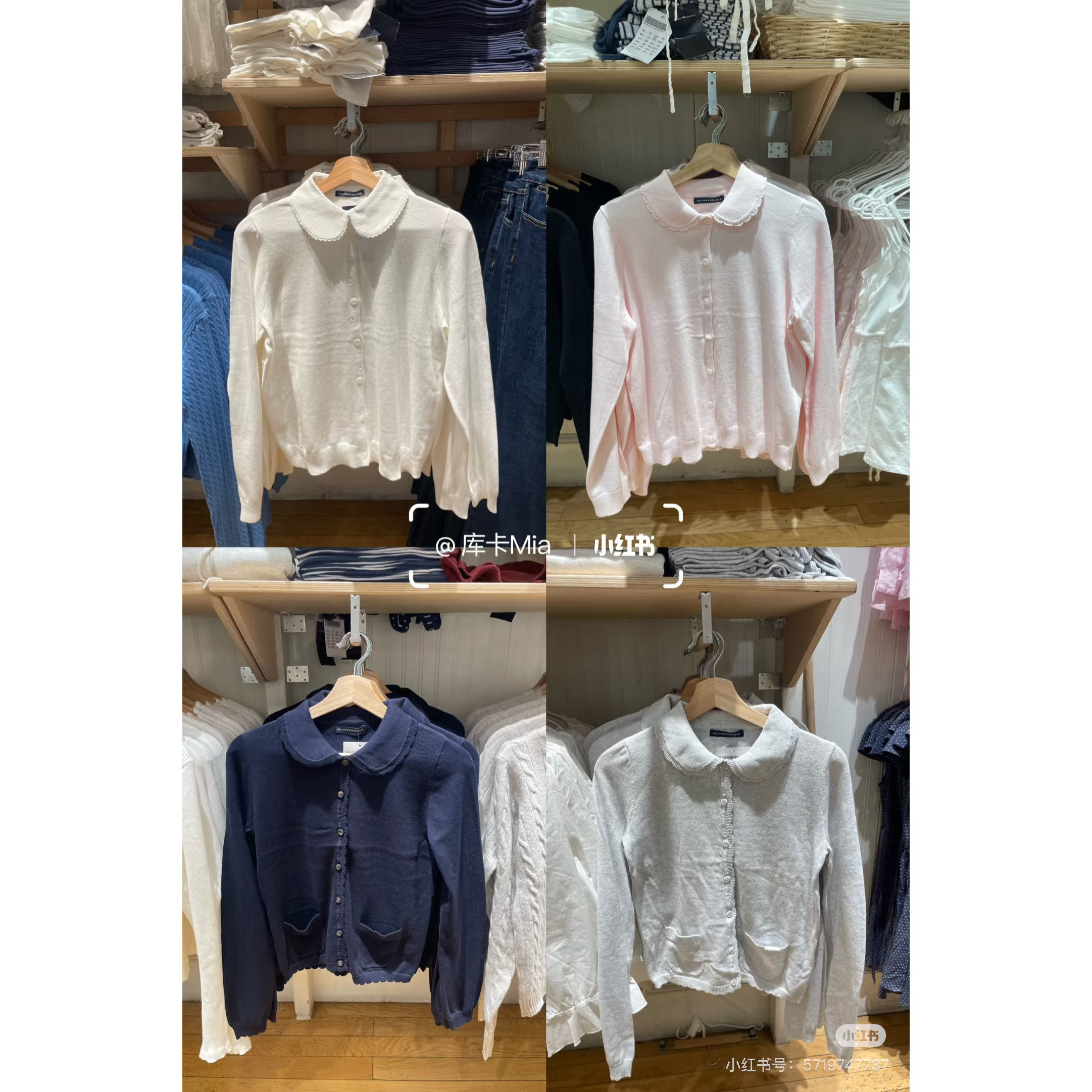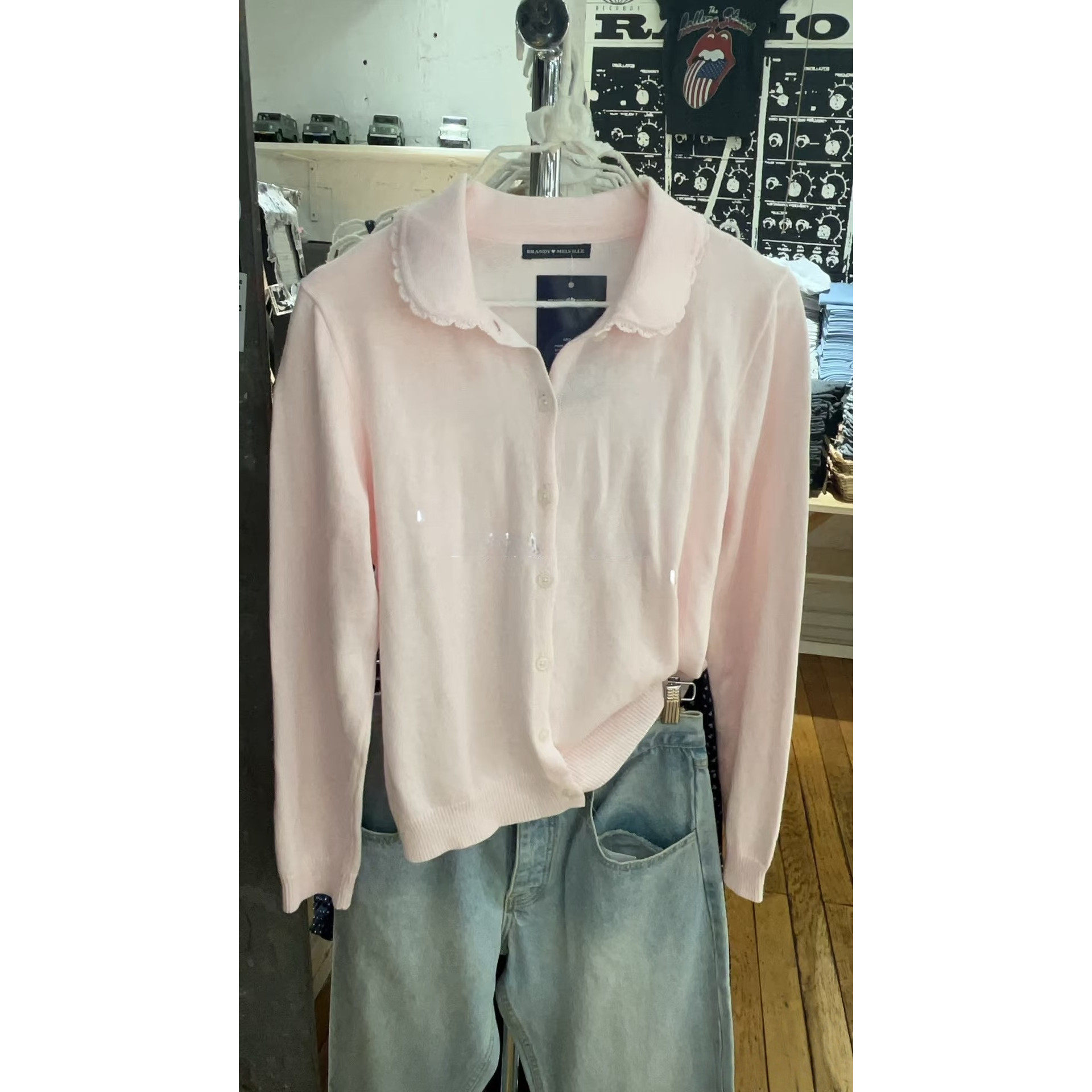 Brandy 女纽扣减龄毛衣外套秋冬 bm浅粉色学院风娃娃领针织开衫