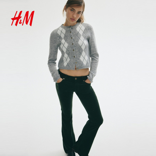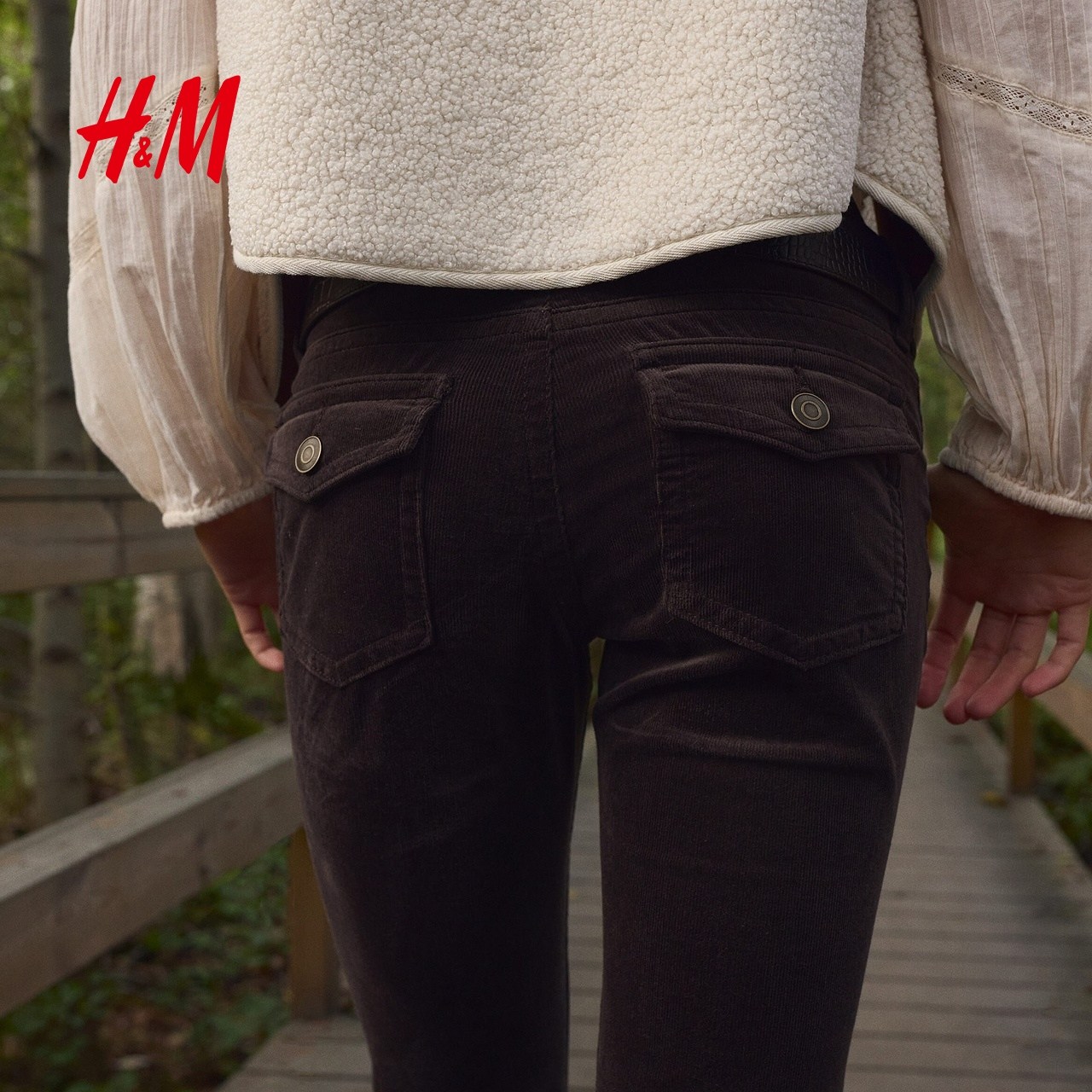 加绒保暖灯芯绒低腰喇叭裤 HM女装 新款 2025年冬季 1300402 休闲裤