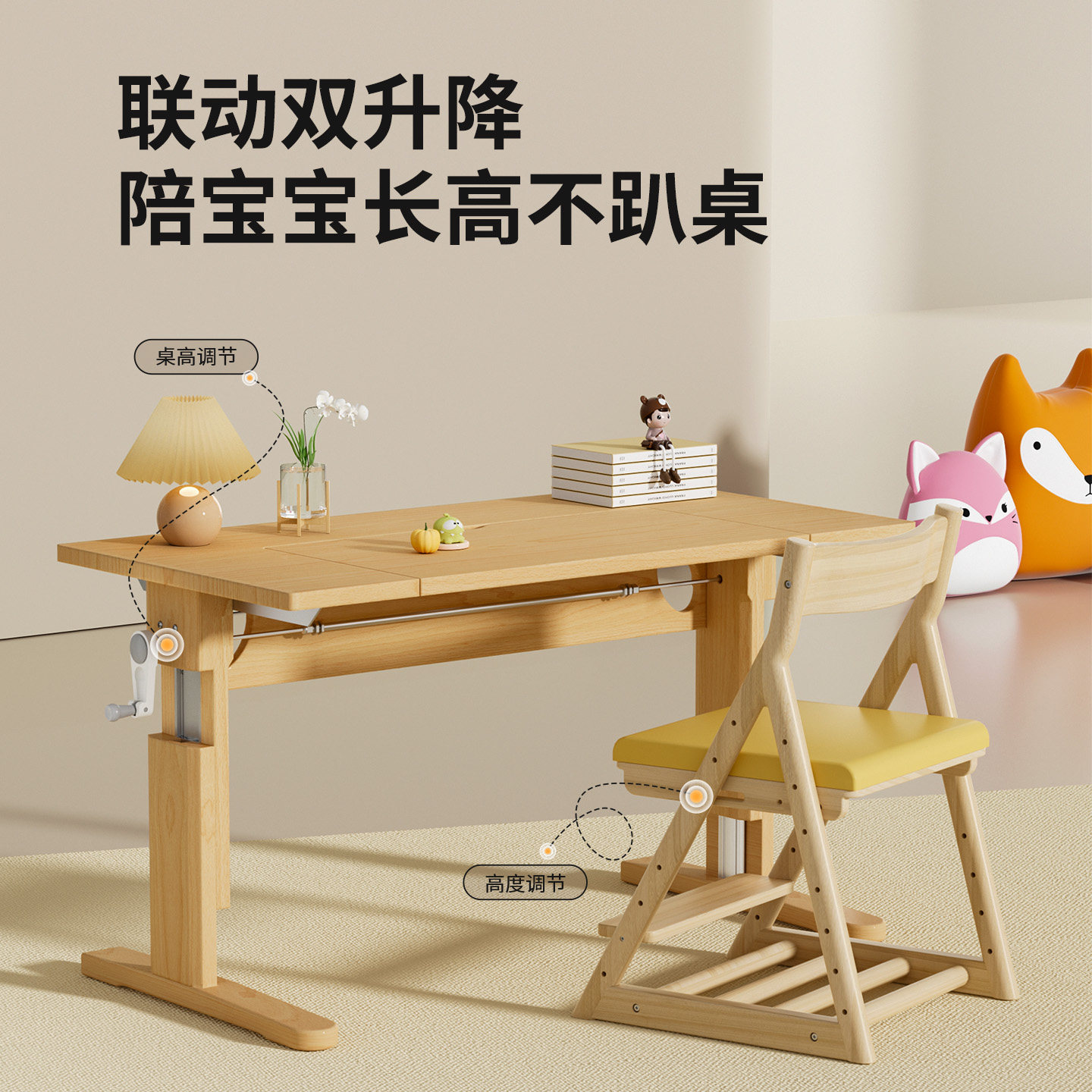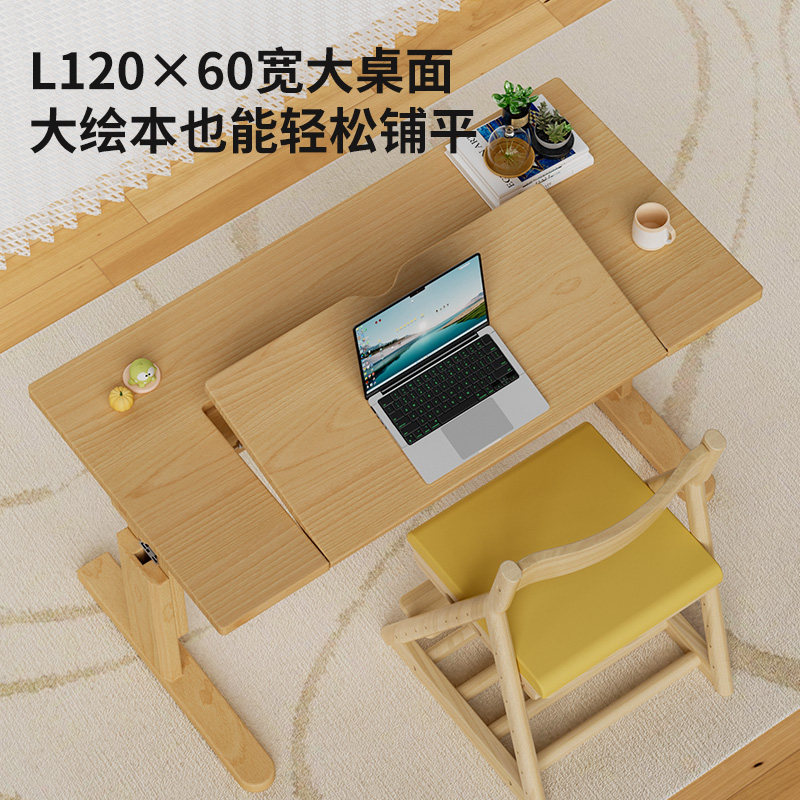 igrow爱果乐儿童学习桌小学生桌椅套装 家用实木写字桌升降大白桌