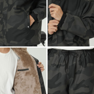 迷彩PU外卖骑行挡风保暖皮裤 男加绒加厚中老年宽松工作服皮衣套装