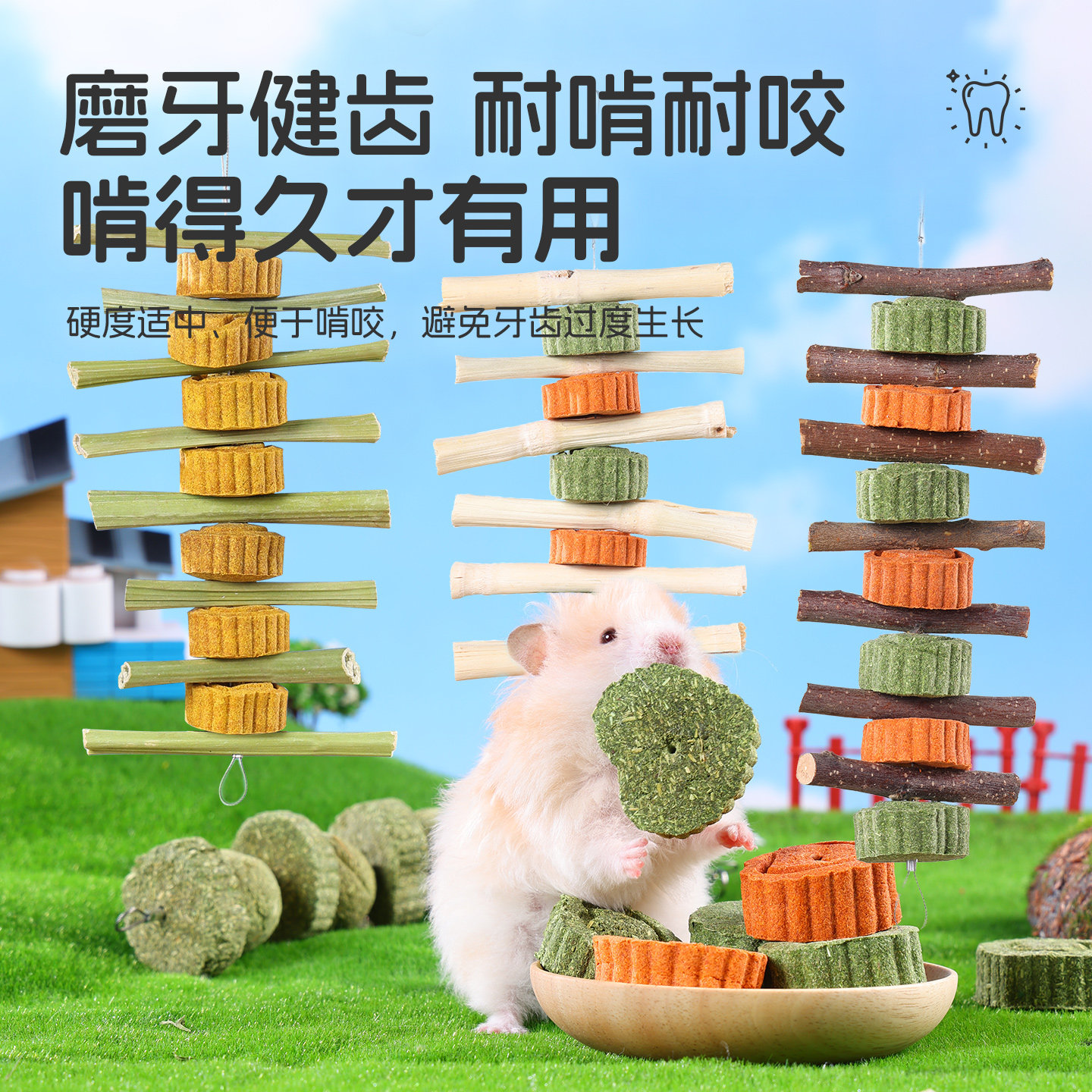 悦小萌仓鼠草饼零食金丝熊花枝鼠专用磨牙棒可食用苹果枝玉米用品