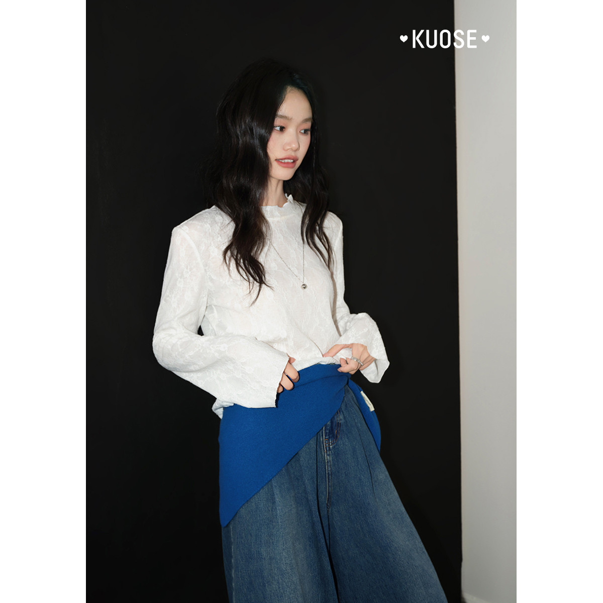 漂亮上衣新款 26春季 内搭叠穿搭配秋 宽松打底衫 阔色蕾丝T恤长袖