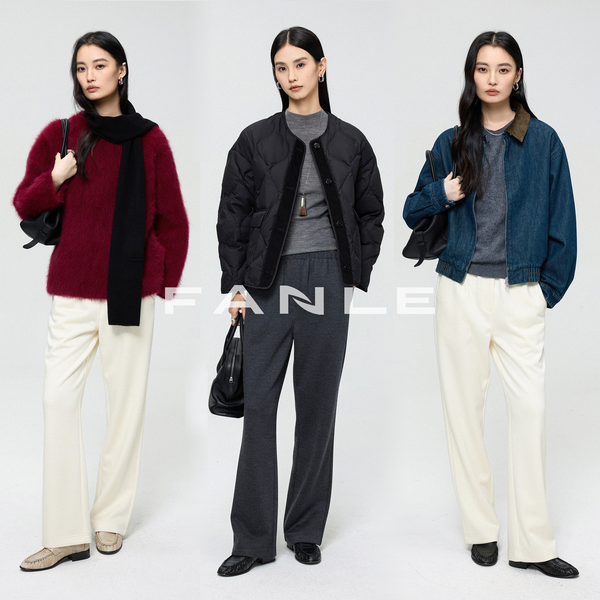 高端羊绒鹅绒双倍保暖窄腰显瘦直筒裤 百搭神裤 STUDIOS冬季 FANLE