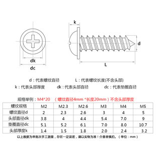 3x4x5x6x8x10x12mm M2.3 PWA镀镍圆头带垫片 自攻螺丝螺钉盘头M2