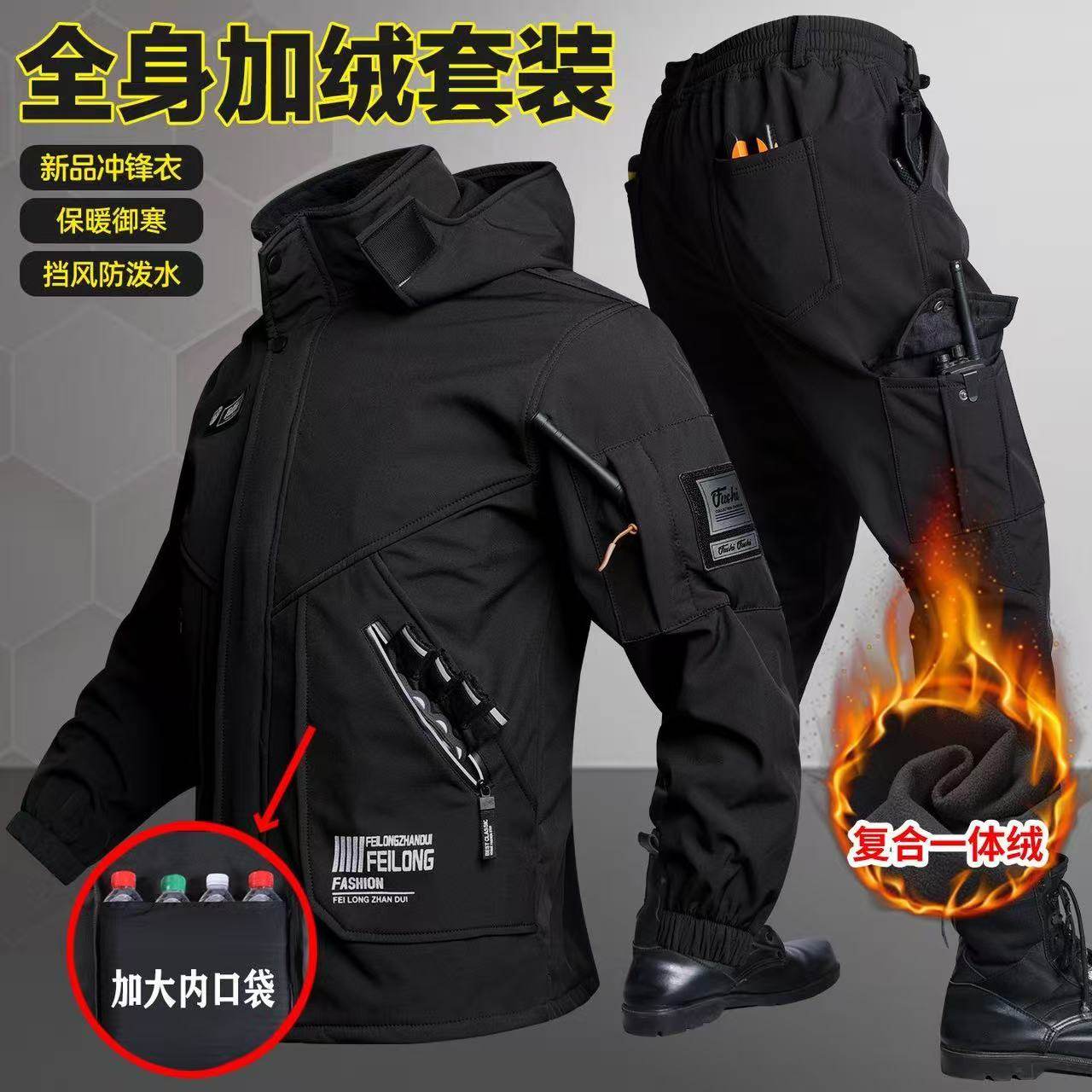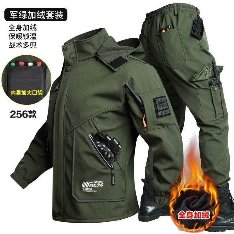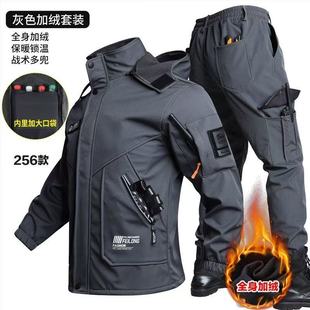 耐磨工作服男户外工装 秋冬季 加绒加厚防水防风保暖战术冲锋衣套装