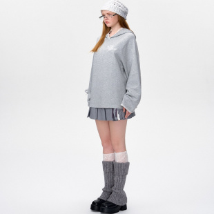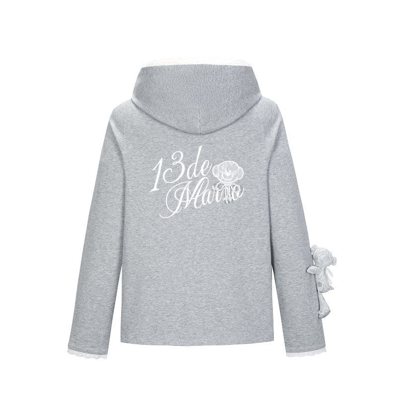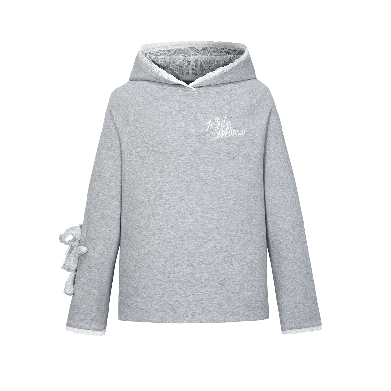 百搭插肩袖 MARZO 时尚 连帽卫衣银泰百货300178 蕾丝贴布帽衫